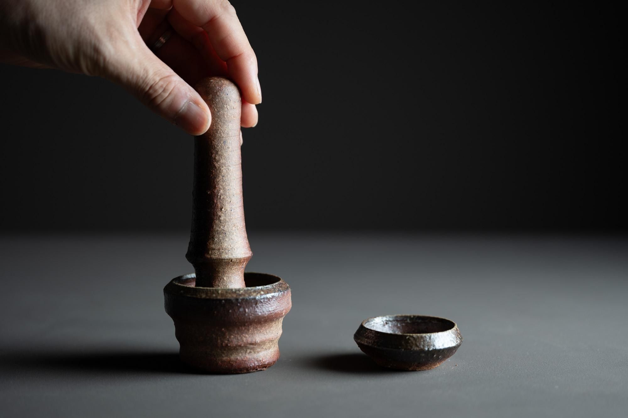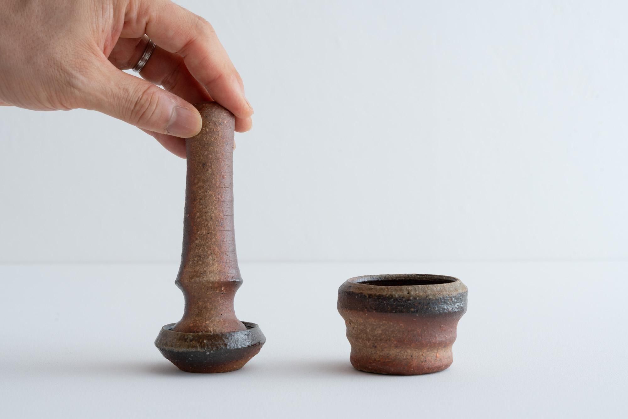 備前焼のスパイスミル。陶器の表面のザラザラがスパイスを磨り潰すのにちょうどいい塩梅なのです。
