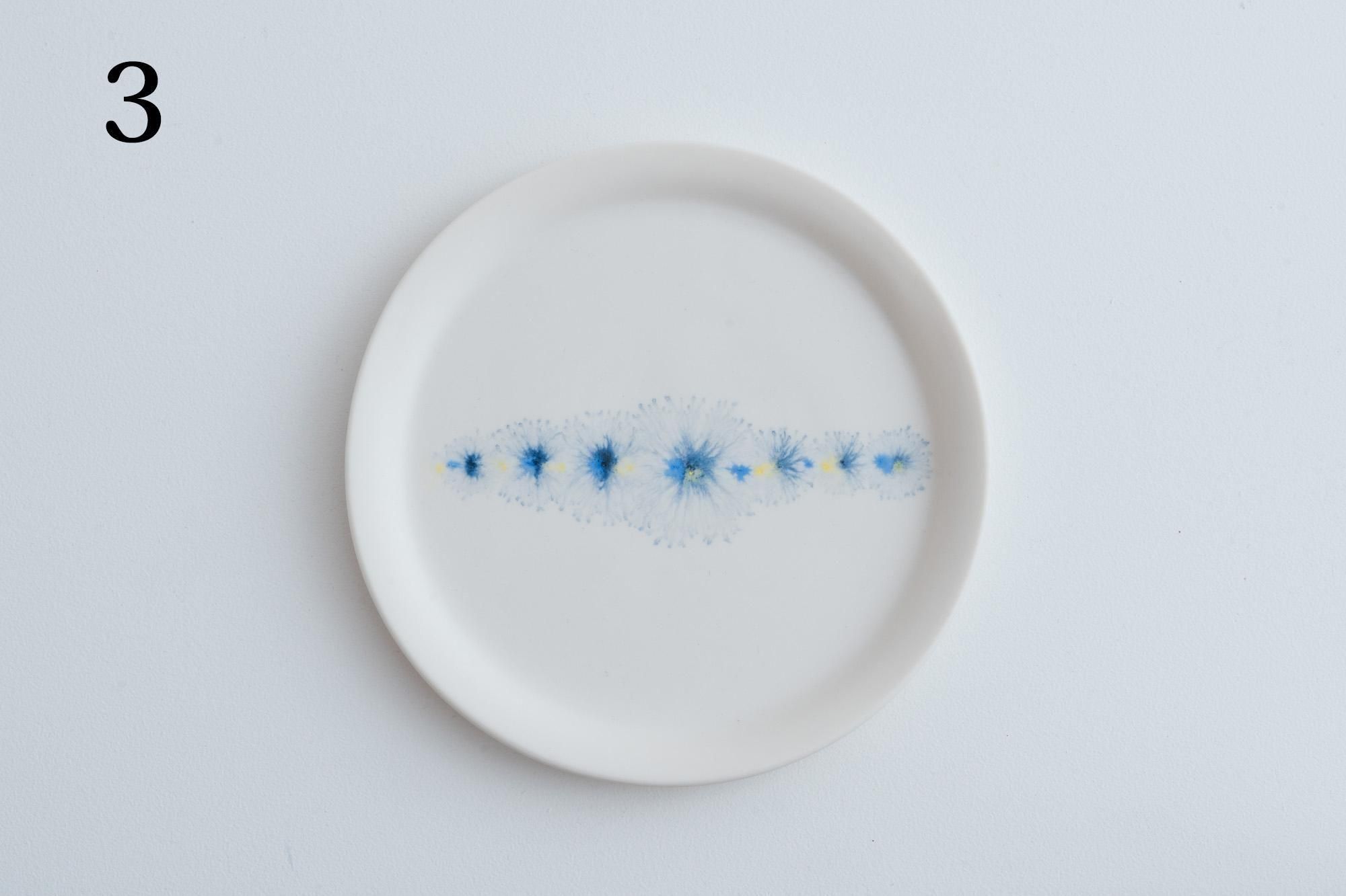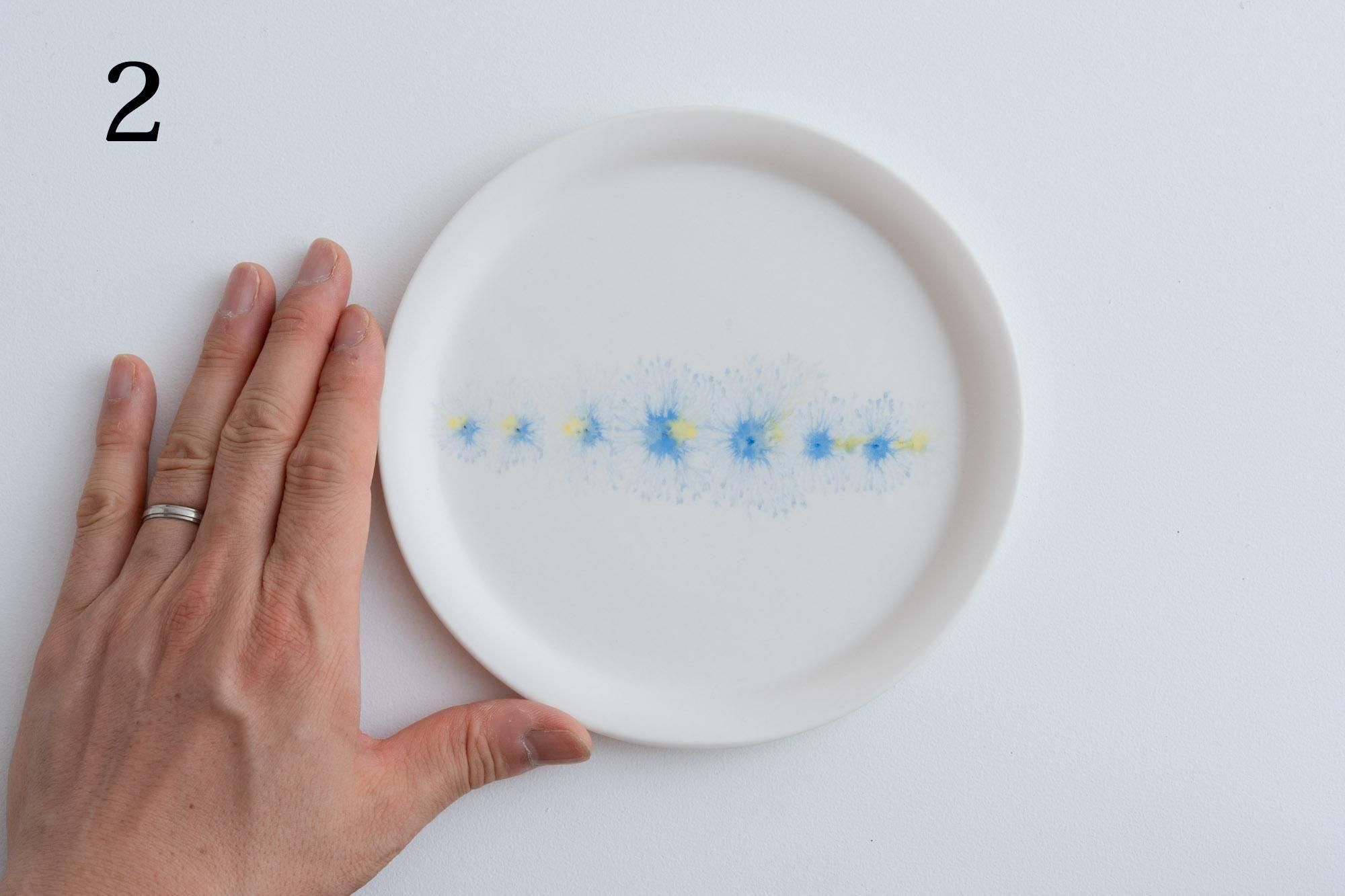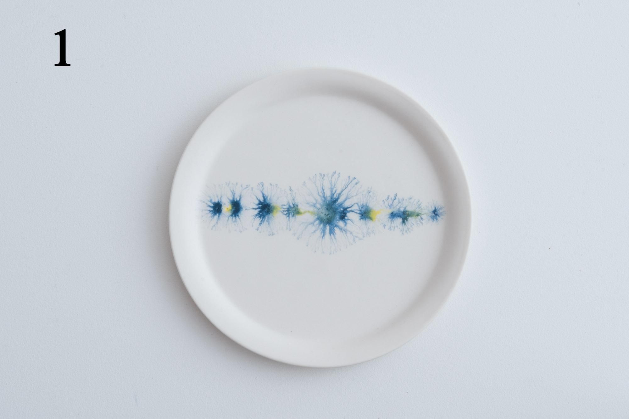 元々のモカウェアは「陶器」の手法であり、化粧土をかけてそれが乾く前に色を落とすことで色が樹氷のような模様として広がることを利用した描画の手法です。