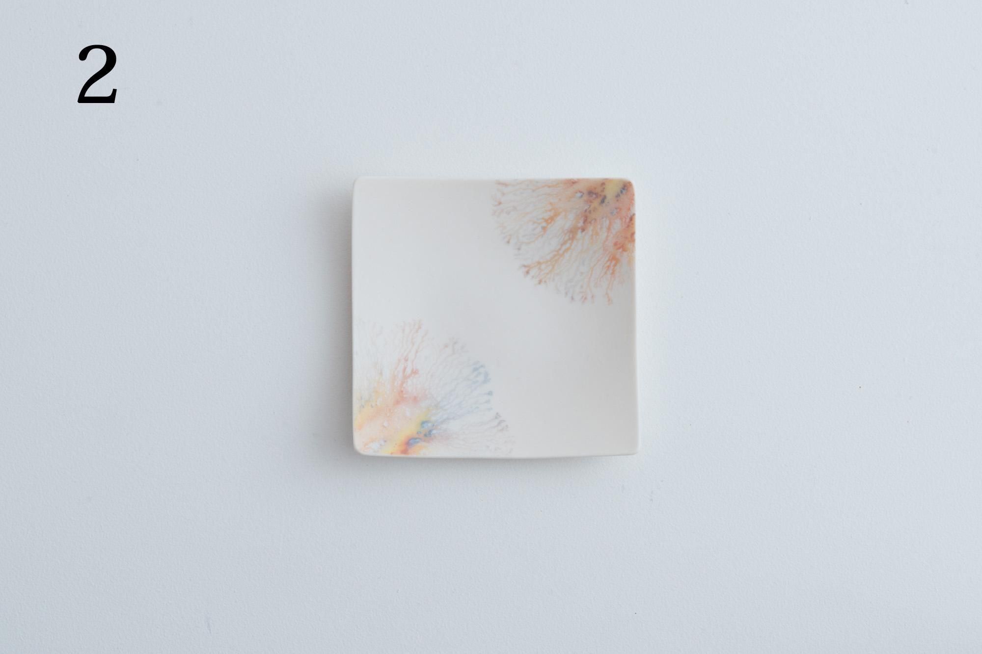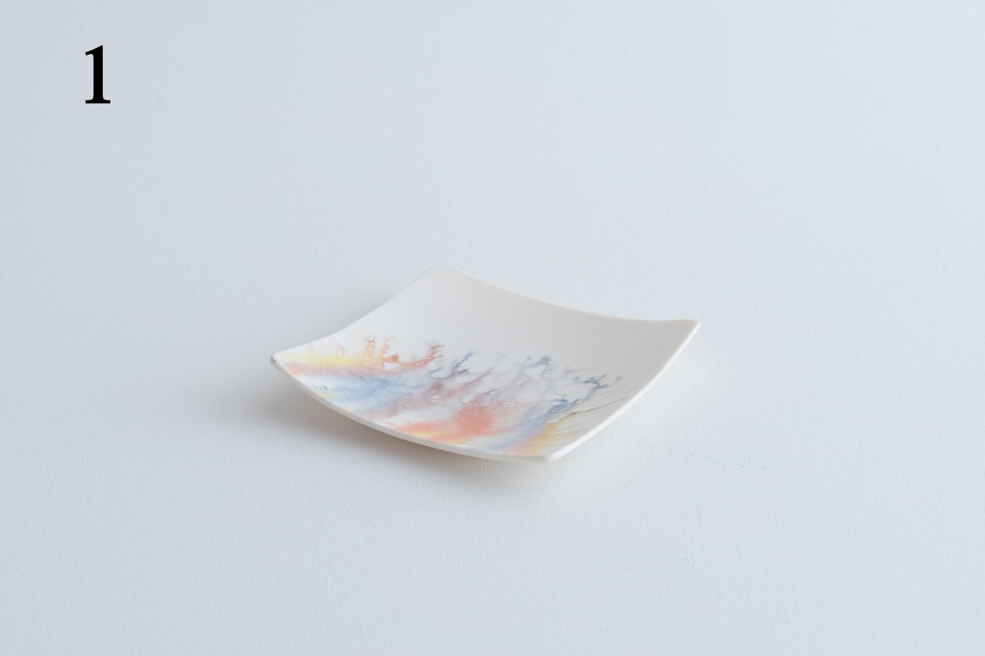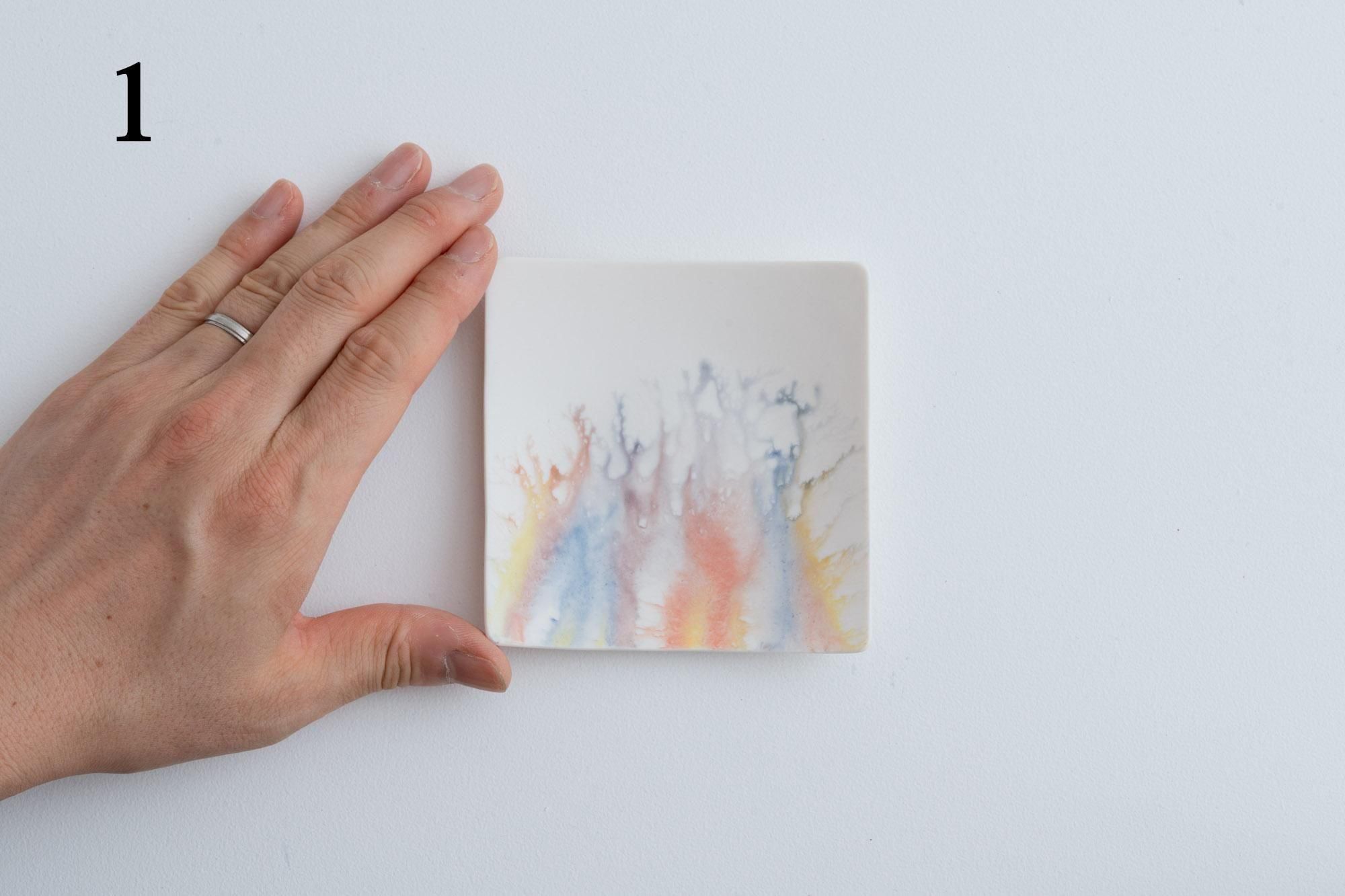 元々のモカウェアは「陶器」の手法であり、化粧土をかけてそれが乾く前に色を落とすことで色が樹氷のような模様として広がることを利用した描画の手法です。