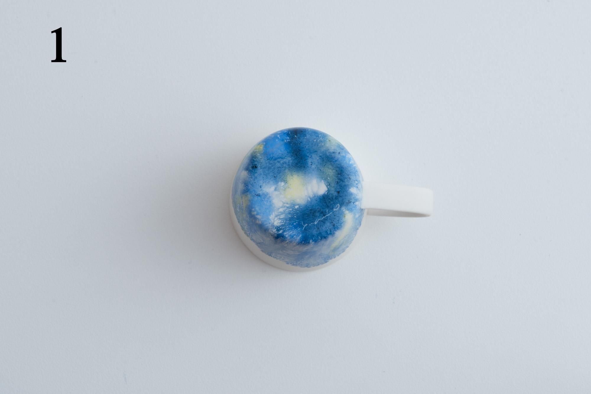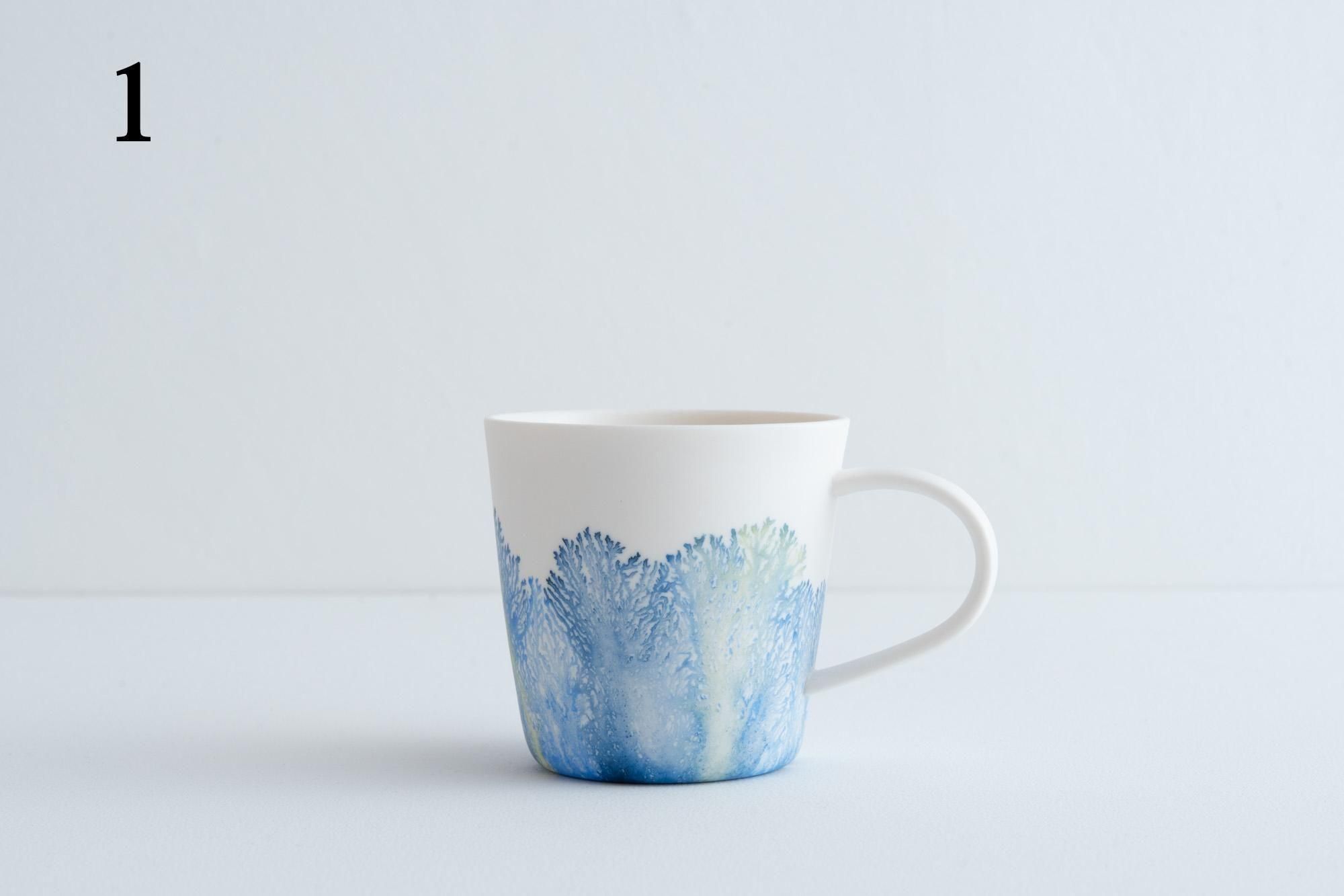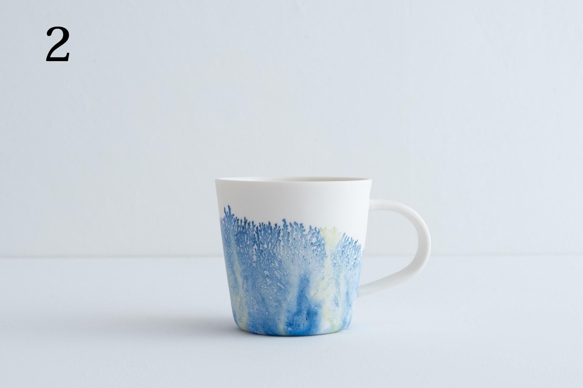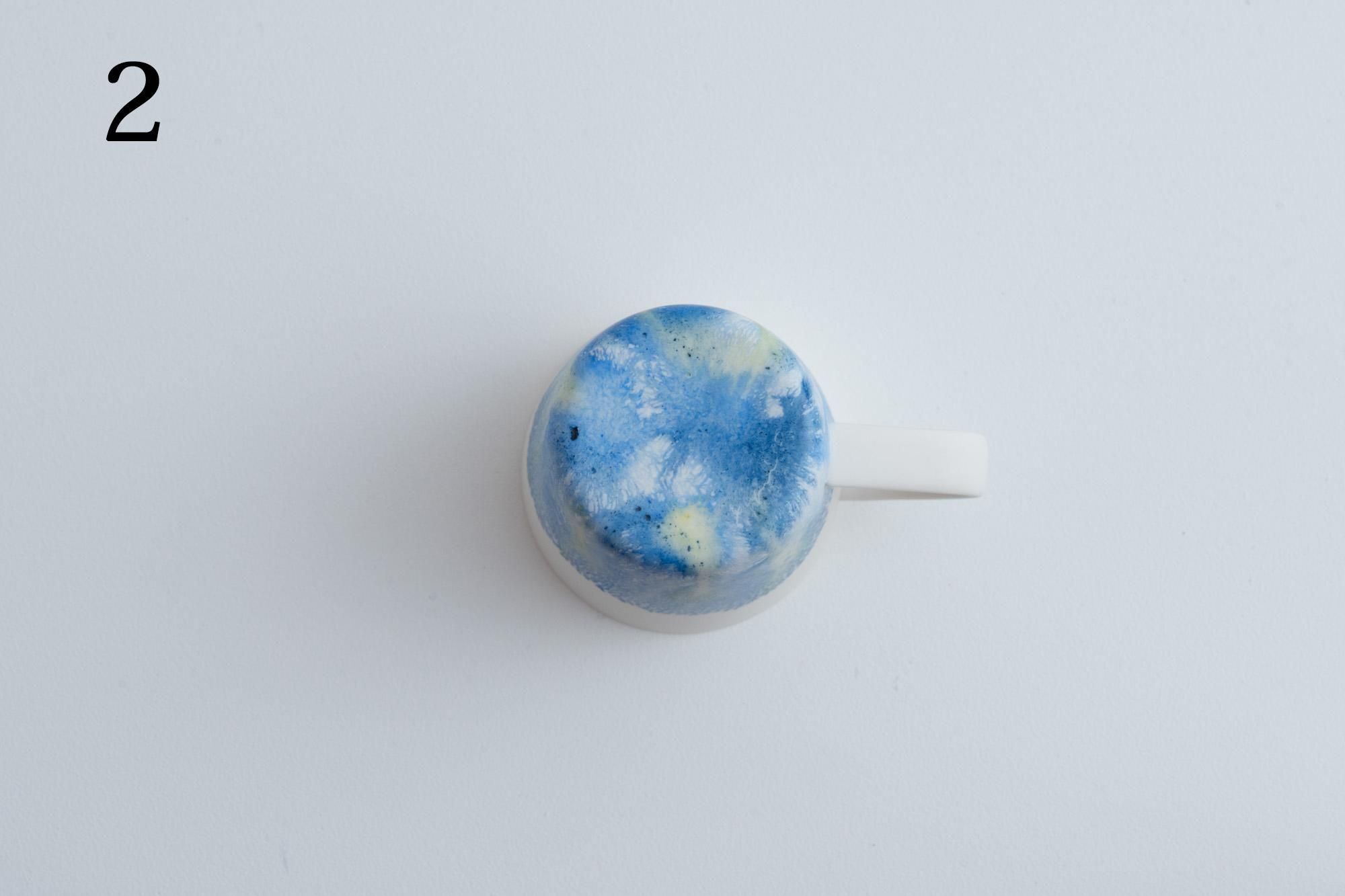 元々のモカウェアは「陶器」の手法であり、化粧土をかけてそれが乾く前に色を落とすことで色が樹氷のような模様として広がることを利用した描画の手法です。