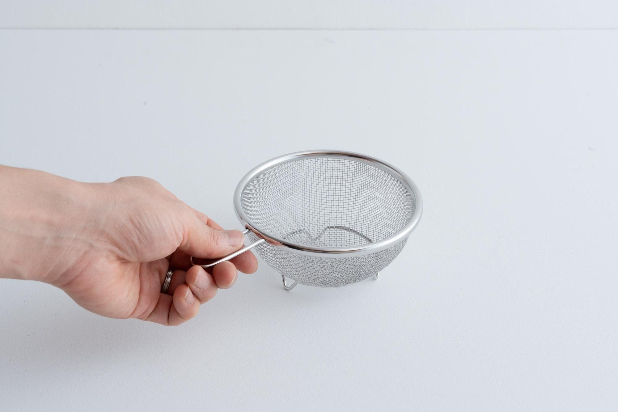 可愛らしい130mmサイズは、ミニトマトを洗ったり、コーンの缶詰の水切りなどにぴったりの大きさ