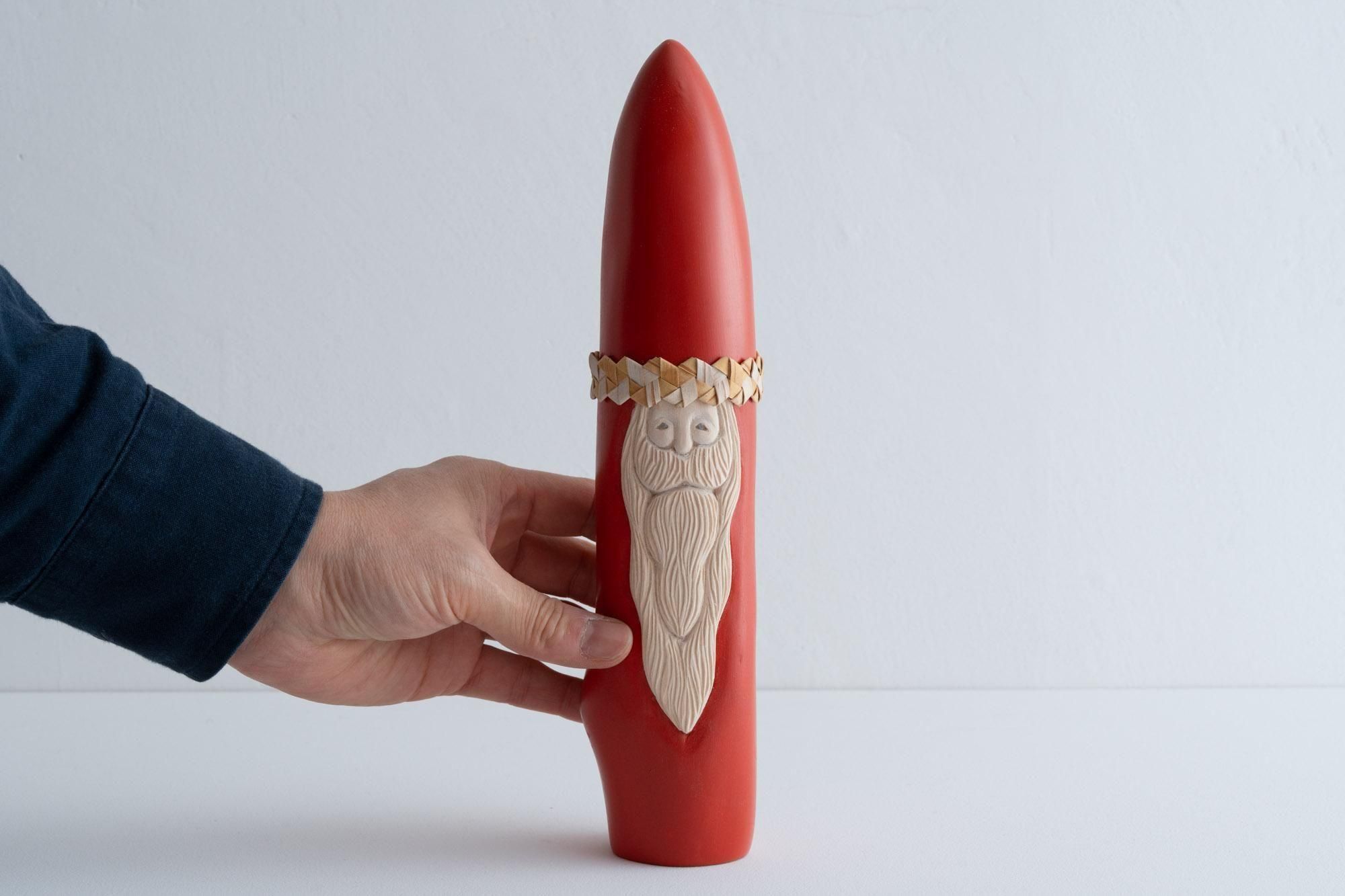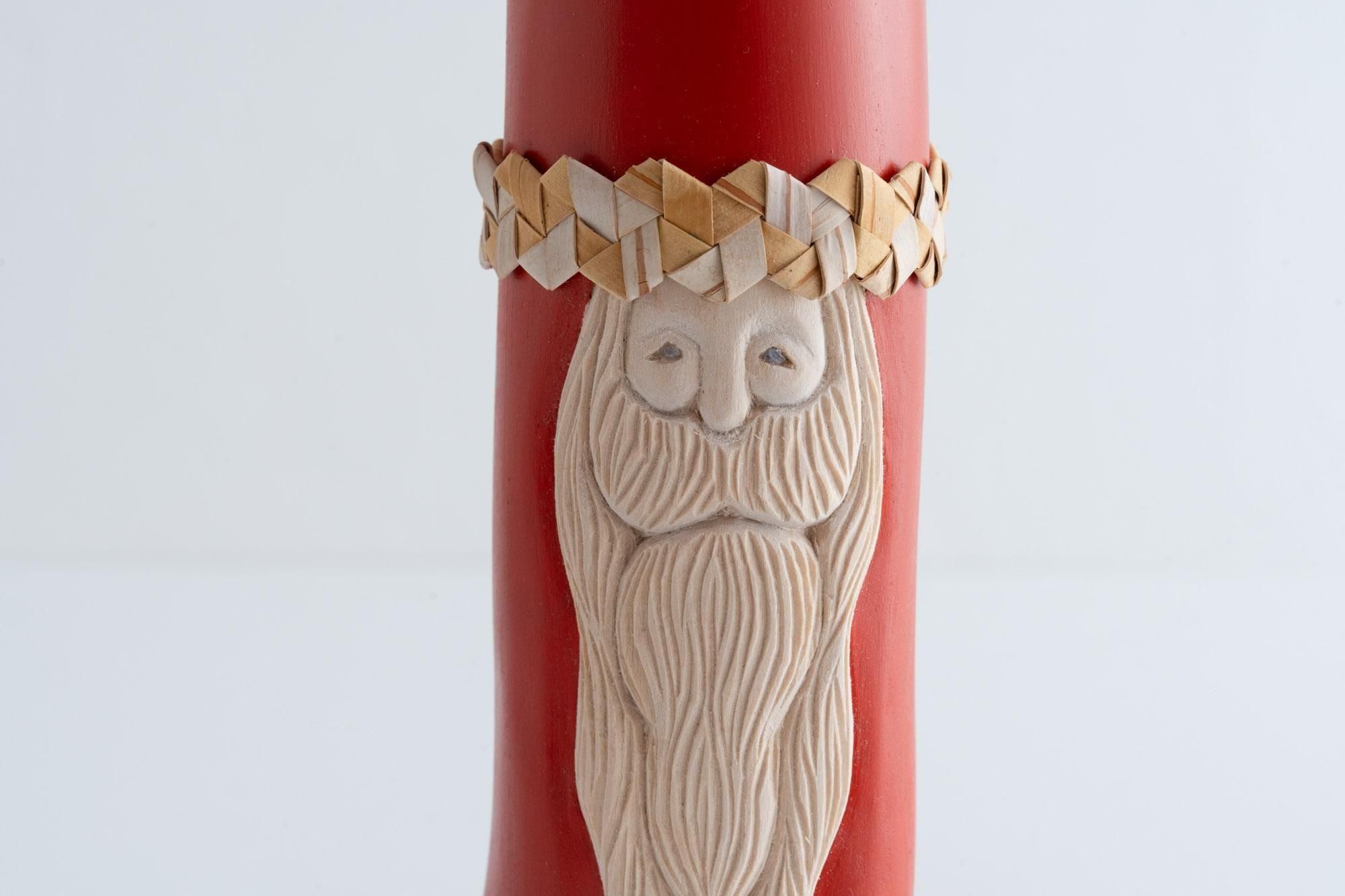 頭にかぶっているリングは、一つ一つサンタのサイズに合わせて白樺の皮を編んだもの(写真は別の白樺サンタです)。