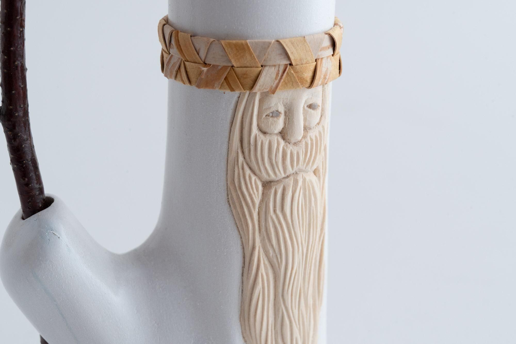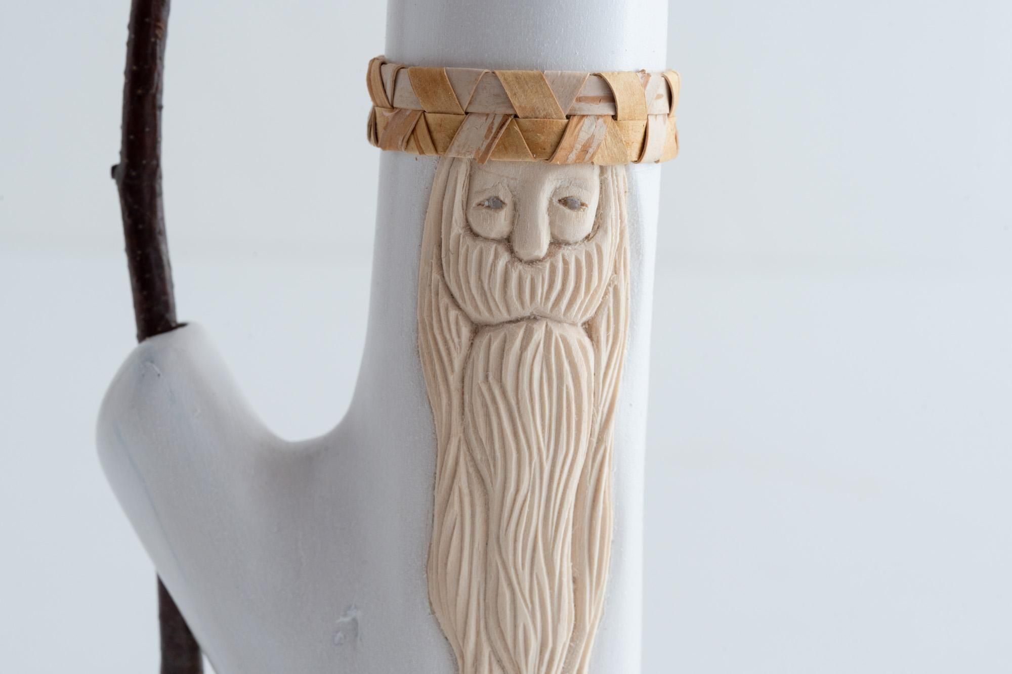頭にかぶっているリングは、一つ一つサンタのサイズに合わせて白樺の皮を編んだもの(写真は別の白樺サンタです)。