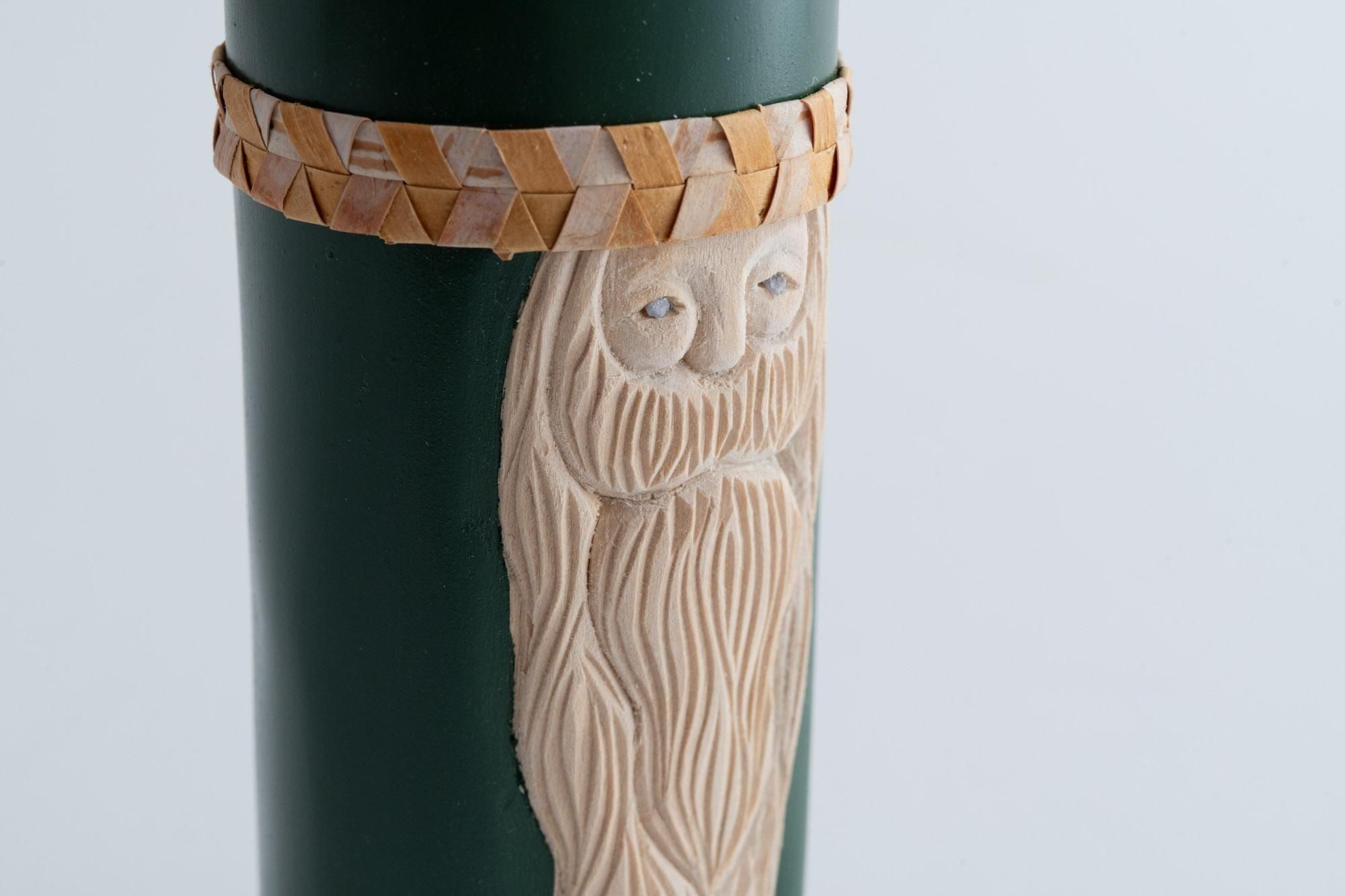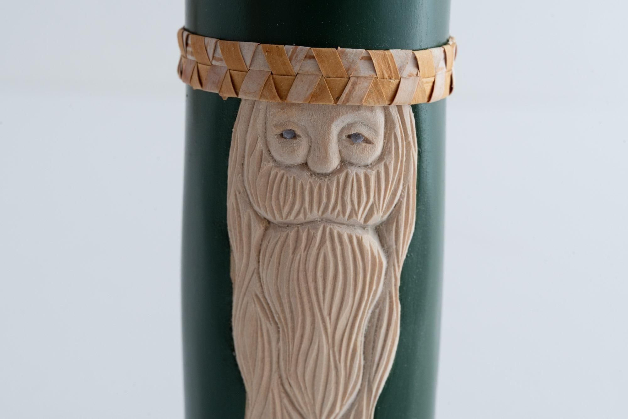 頭にかぶっているリングは、一つ一つサンタのサイズに合わせて白樺の皮を編んだもの(写真は別の白樺サンタです)。