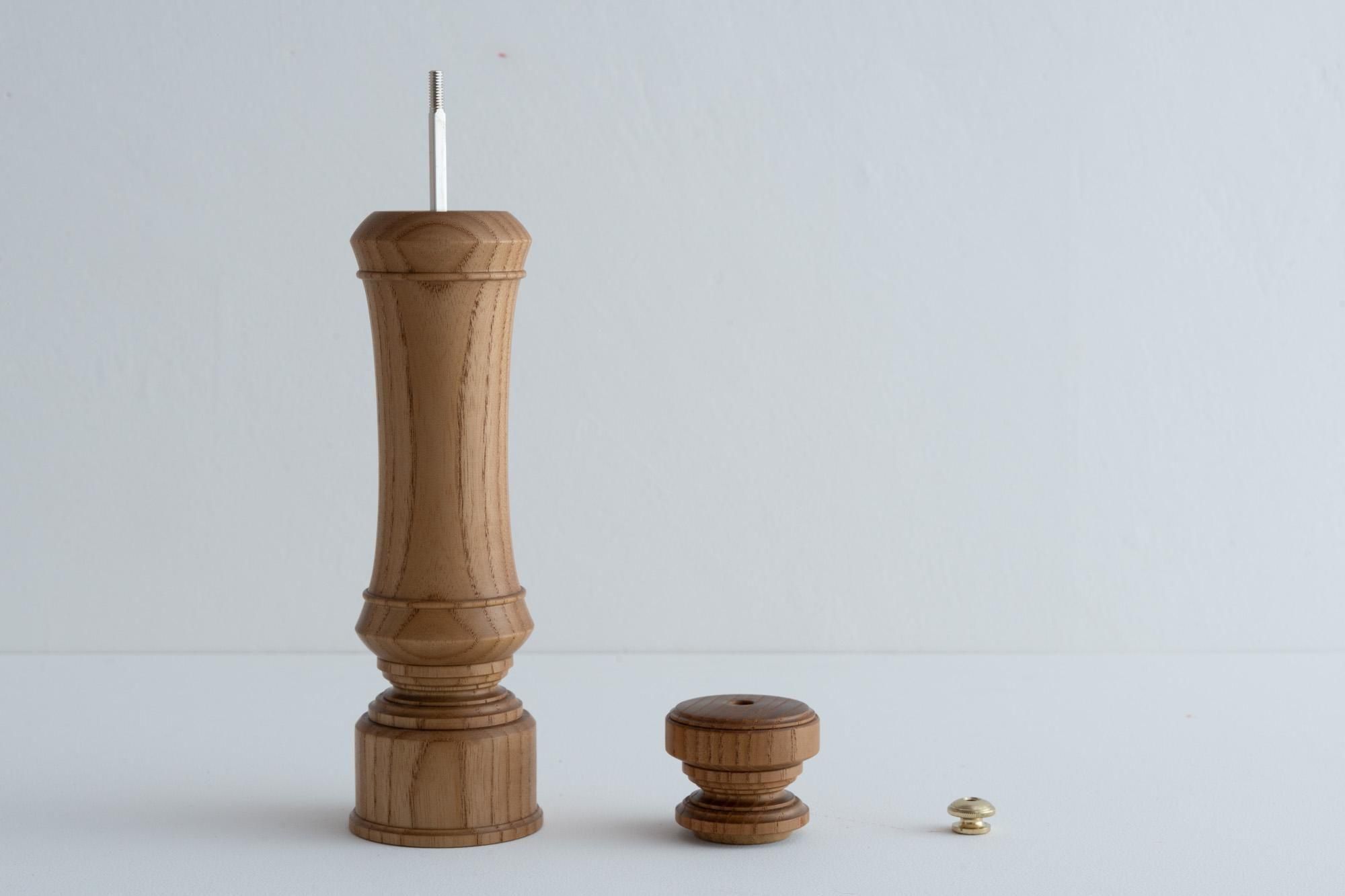 海外製の椅子の脚であったり、はたまた仏具であったりと、洋の東西を問わず先人のデザインにヒントを得ながらユニークなペッパーミルを次々と世に送り出している木工ヤマニ。