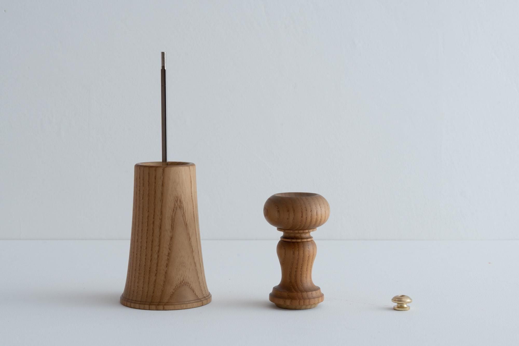 海外製の椅子の脚であったり、はたまた仏具であったりと、洋の東西を問わず先人のデザインにヒントを得ながらユニークなペッパーミルを次々と世に送り出している木工ヤマニ。
