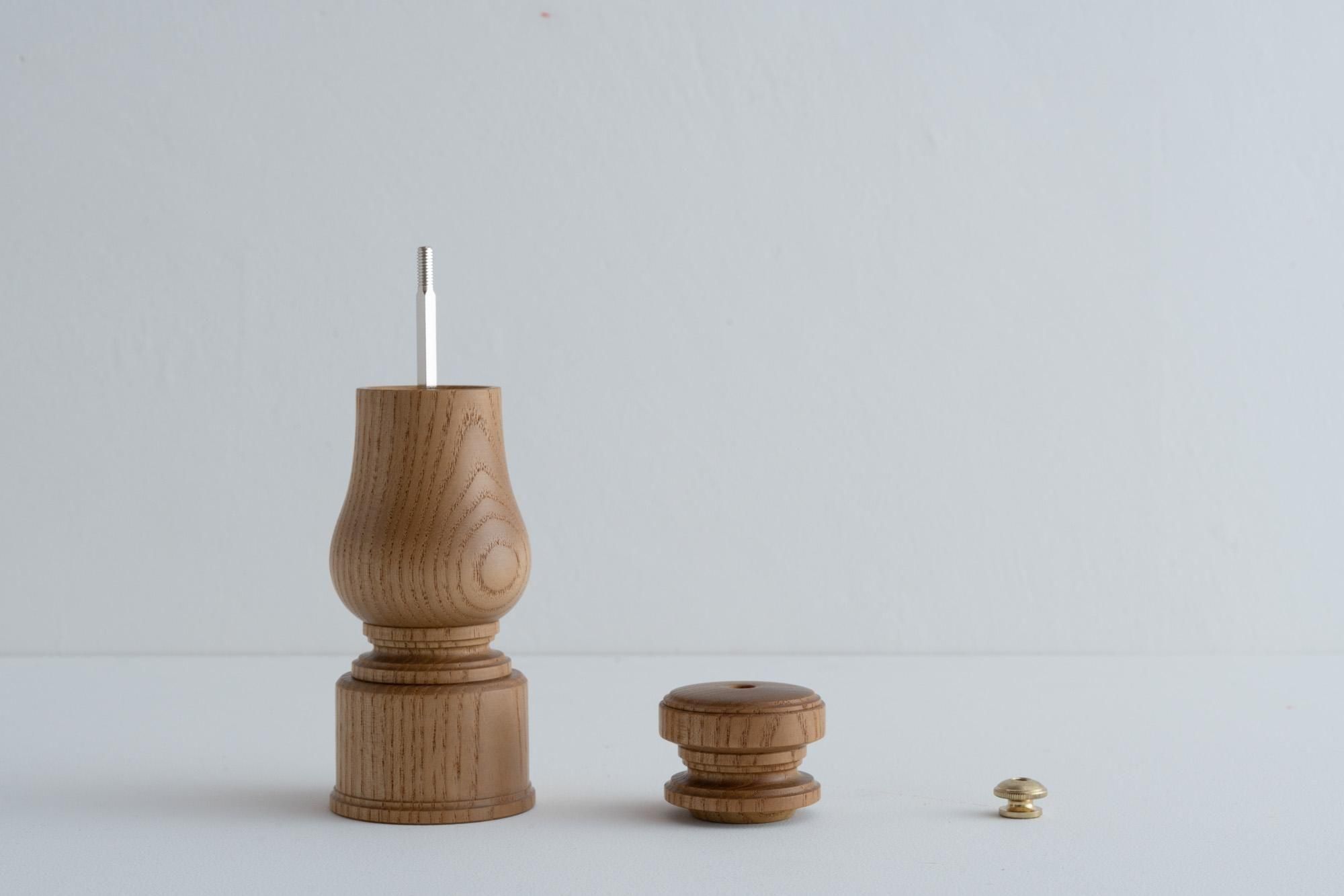 海外製の椅子の脚であったり、はたまた仏具であったりと、洋の東西を問わず先人のデザインにヒントを得ながらユニークなペッパーミルを次々と世に送り出している木工ヤマニ。