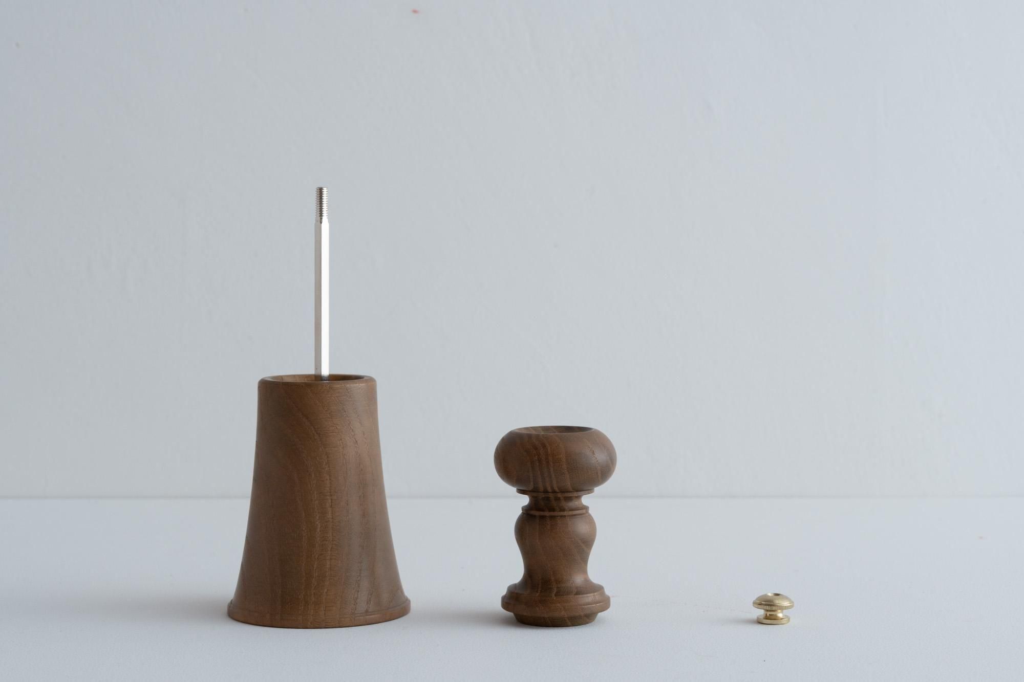 海外製の椅子の脚であったり、はたまた仏具であったりと、洋の東西を問わず先人のデザインにヒントを得ながらユニークなペッパーミルを次々と世に送り出している木工ヤマニ。