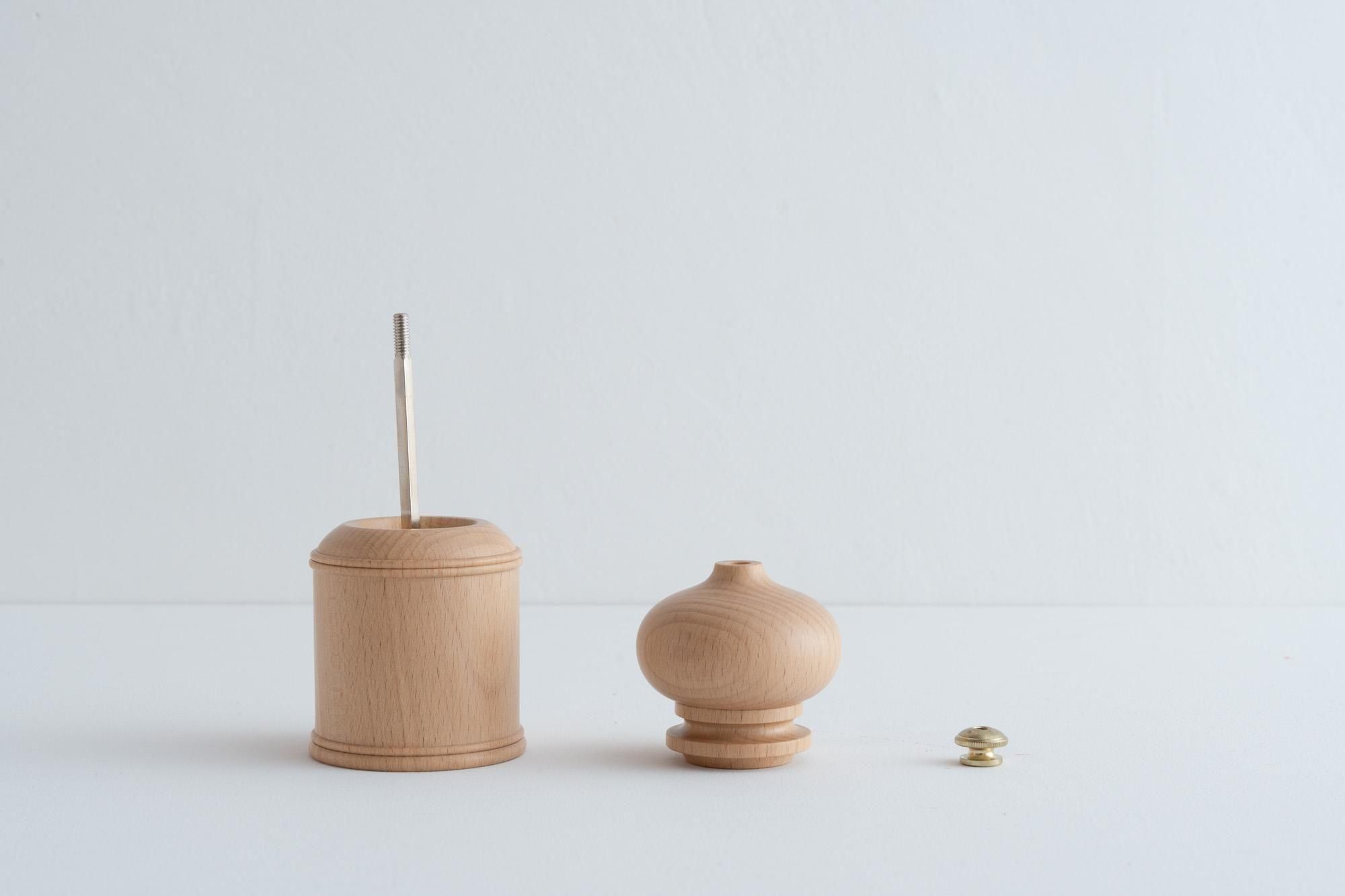 海外製の椅子の脚であったり、はたまた仏具であったりと、洋の東西を問わず先人のデザインにヒントを得ながらユニークなペッパーミルを次々と世に送り出している木工ヤマニ。