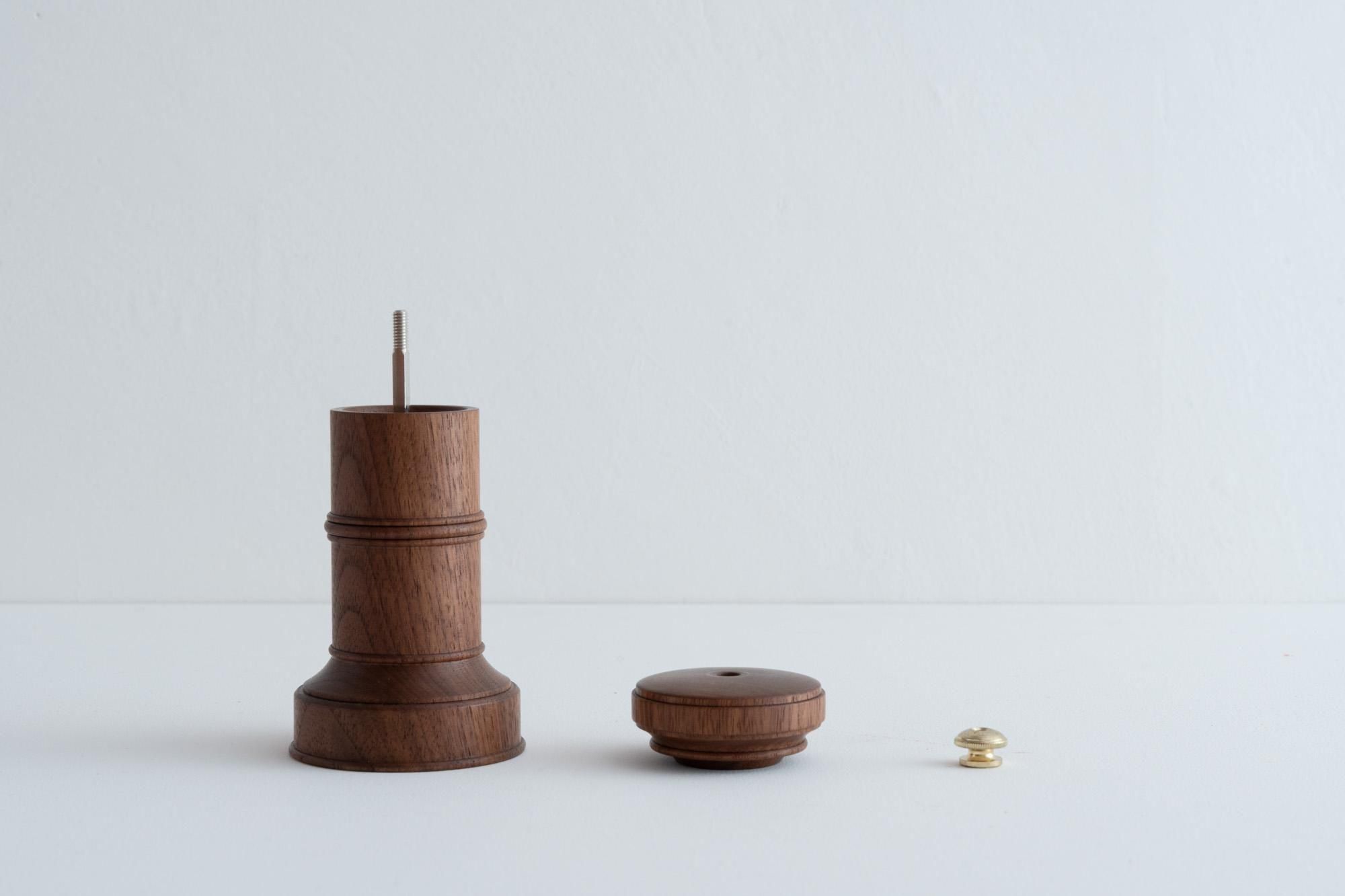 海外製の椅子の脚であったり、はたまた仏具であったりと、洋の東西を問わず先人のデザインにヒントを得ながらユニークなペッパーミルを次々と世に送り出している木工ヤマニ。