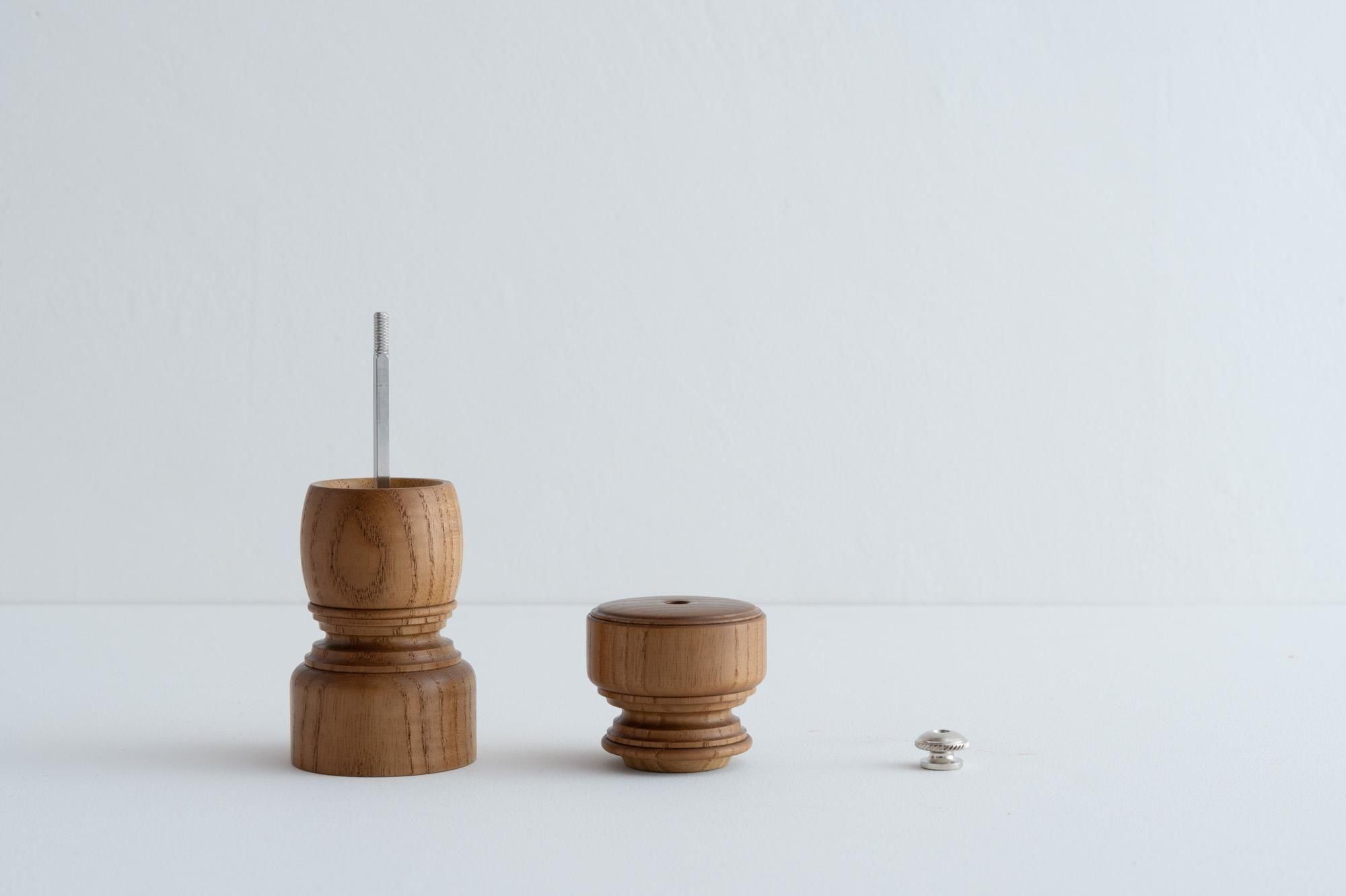 海外製の椅子の脚であったり、はたまた仏具であったりと、洋の東西を問わず先人のデザインにヒントを得ながらユニークなペッパーミルを次々と世に送り出している木工ヤマニ。