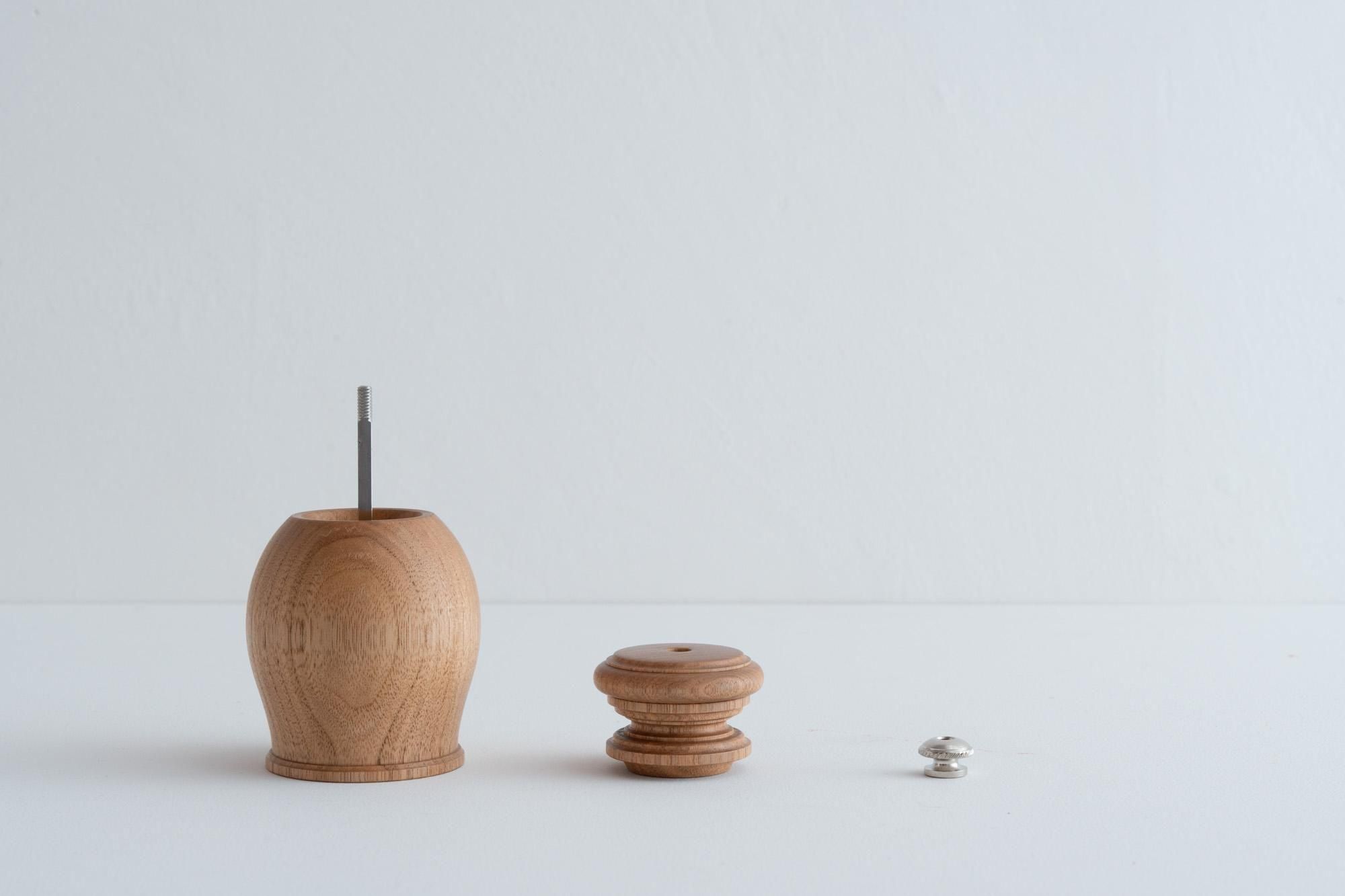 海外製の椅子の脚であったり、はたまた仏具であったりと、洋の東西を問わず先人のデザインにヒントを得ながらユニークなペッパーミルを次々と世に送り出している木工ヤマニ。