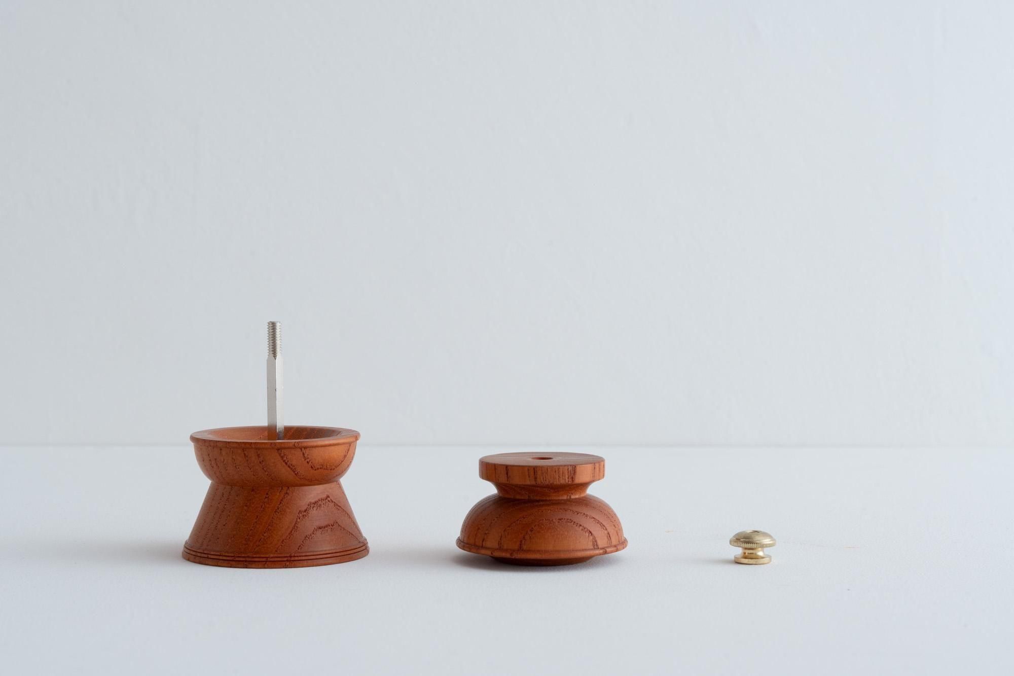 天然木だからこその美しい木目や、そこにちょうどフィットするクラシカルな金色のつまみネジもちょうどいいアクセントになっています。