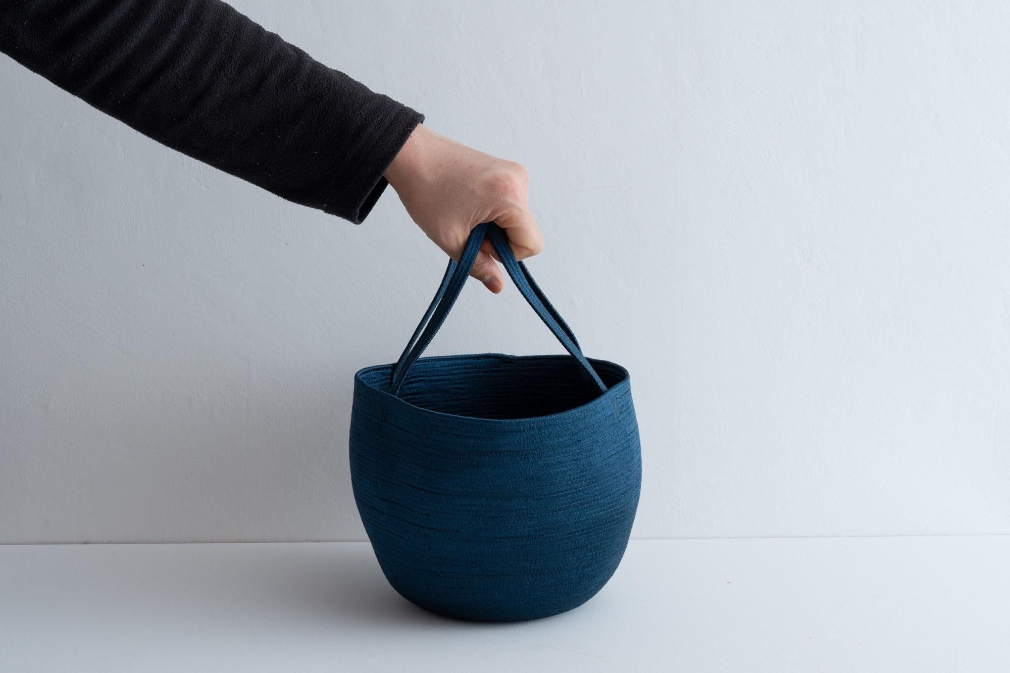 yoshinoyashimachiのバッグは、コットンの芯を縫い上げていく際に自然と生まれてくる曲線を活かした作りになっているため、似た形のものは出来こそすれ、全く同じものは二度と作ることはできません。