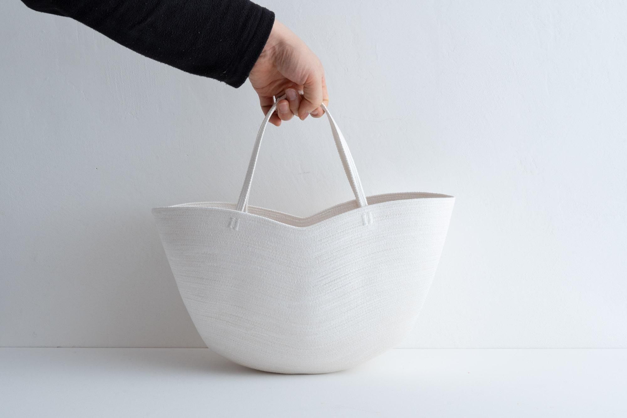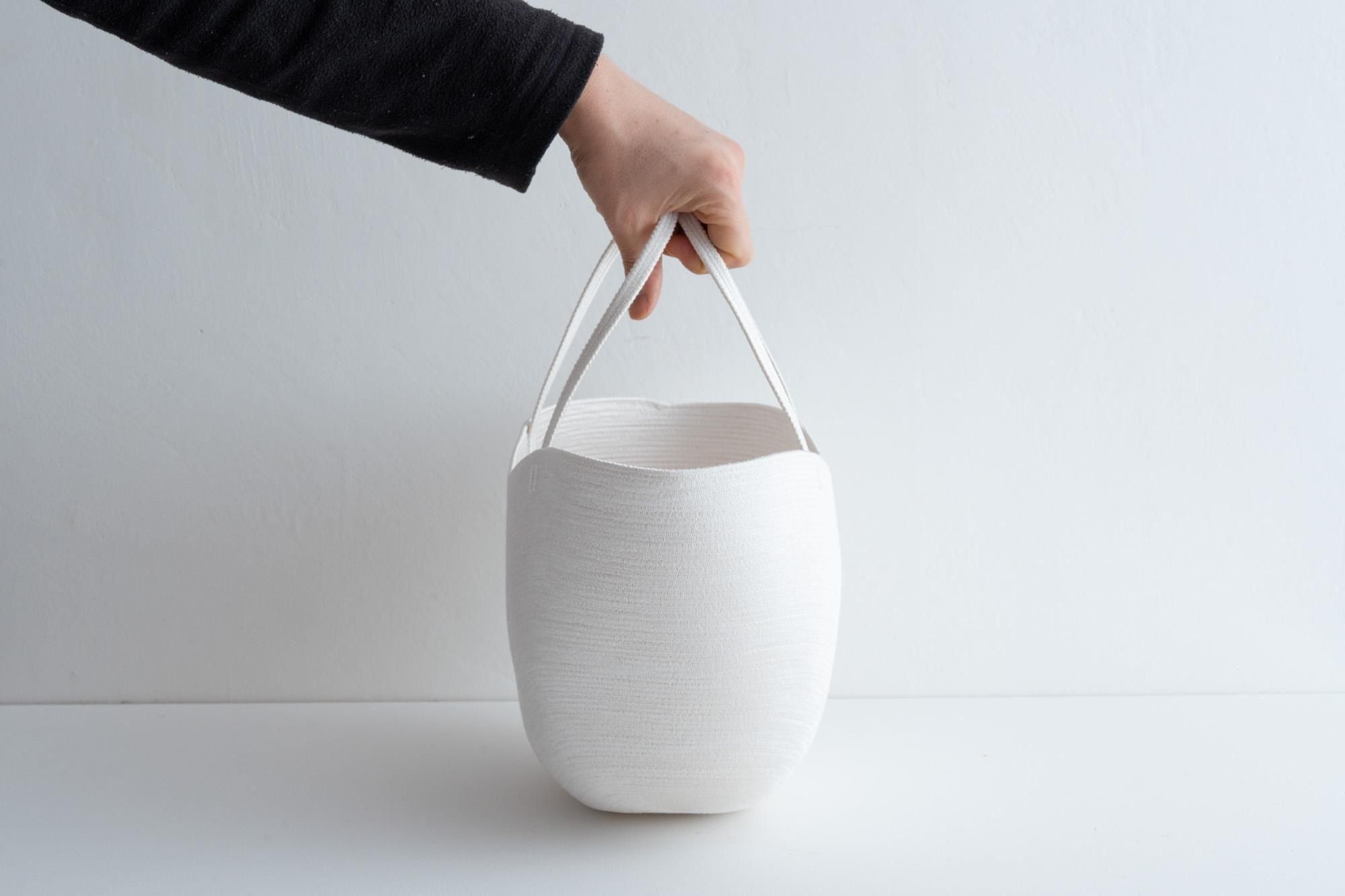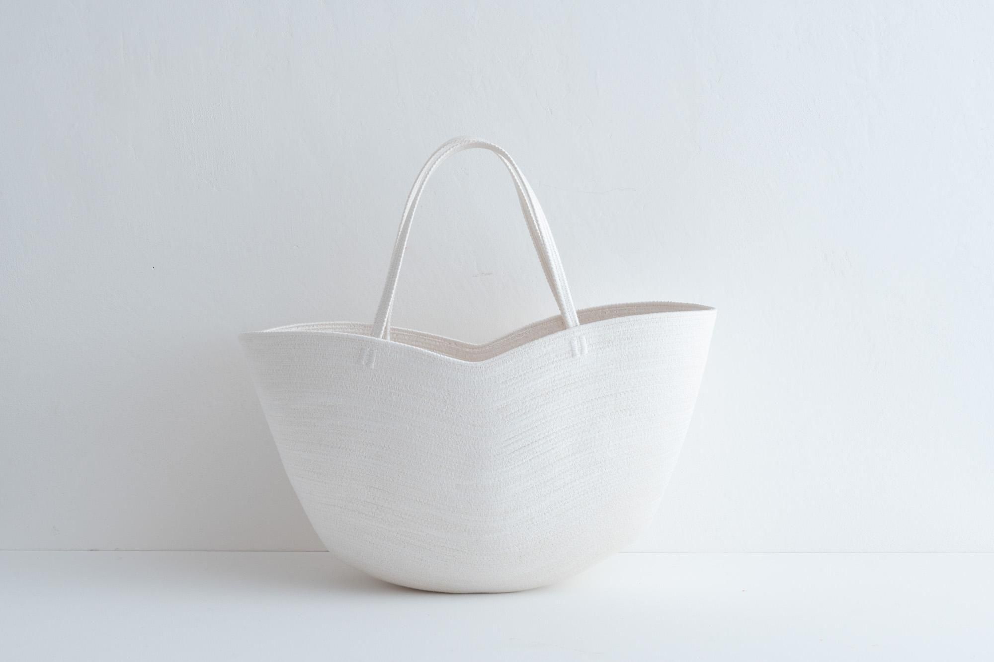yoshinoyashimachiのバッグは、コットンの芯を縫い上げていく際に自然と生まれてくる曲線を活かした作りになっているため、似た形のものは出来こそすれ、全く同じものは二度と作ることはできません。