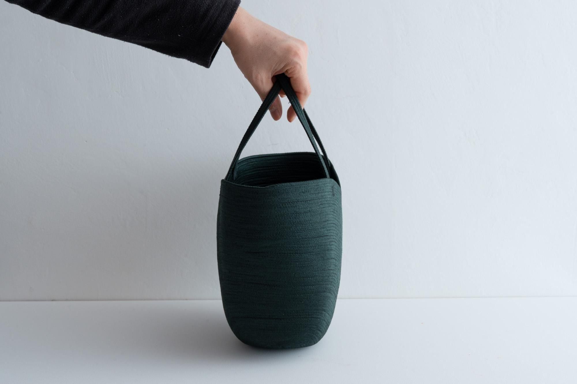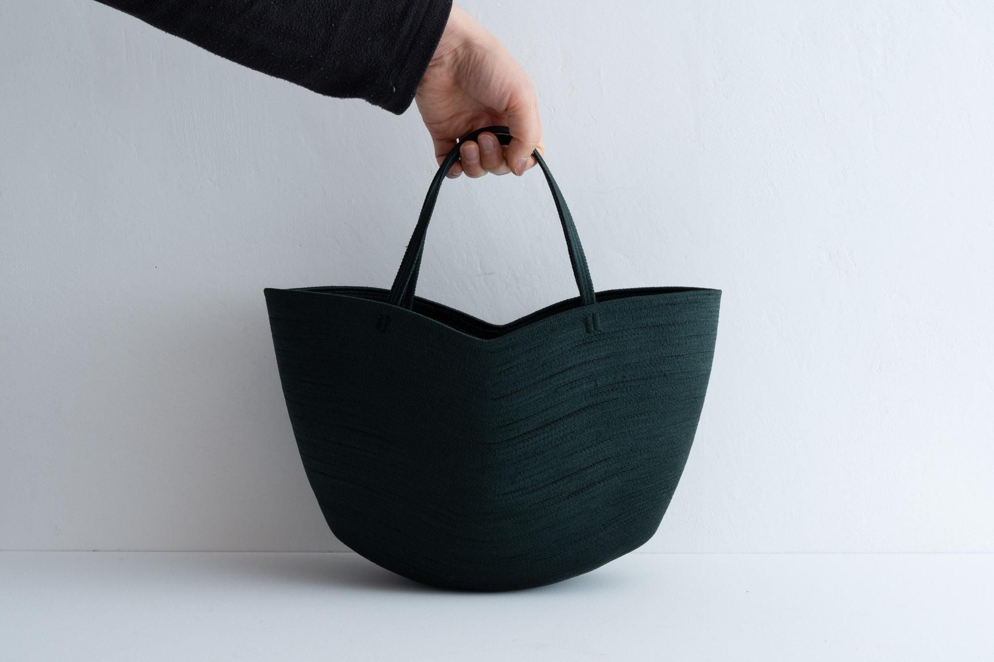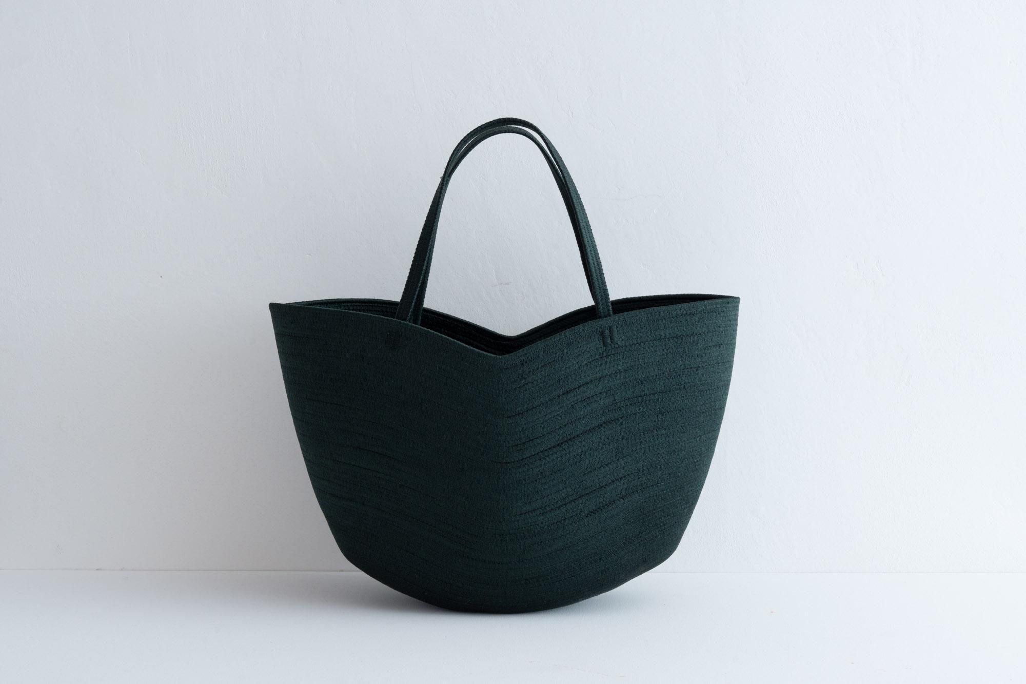 yoshinoyashimachiのバッグは、コットンの芯を縫い上げていく際に自然と生まれてくる曲線を活かした作りになっているため、似た形のものは出来こそすれ、全く同じものは二度と作ることはできません。