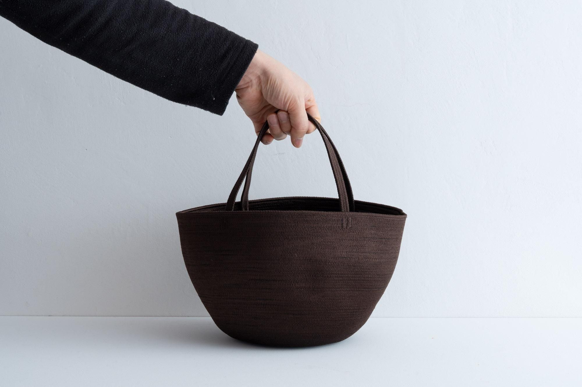 yoshinoyashimachiのバッグは、コットンの芯を縫い上げていく際に自然と生まれてくる曲線を活かした作りになっているため、似た形のものは出来こそすれ、全く同じものは二度と作ることはできません。