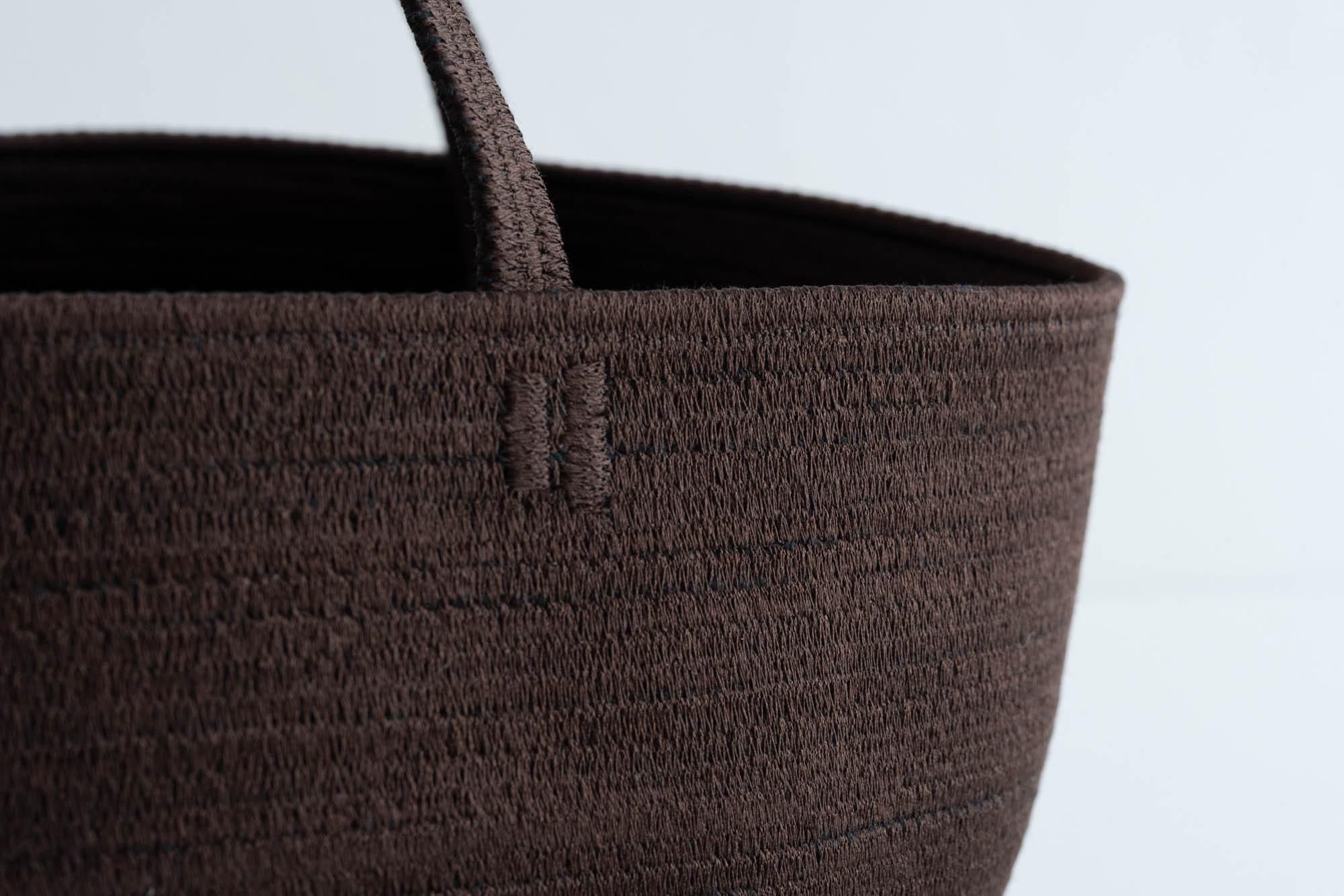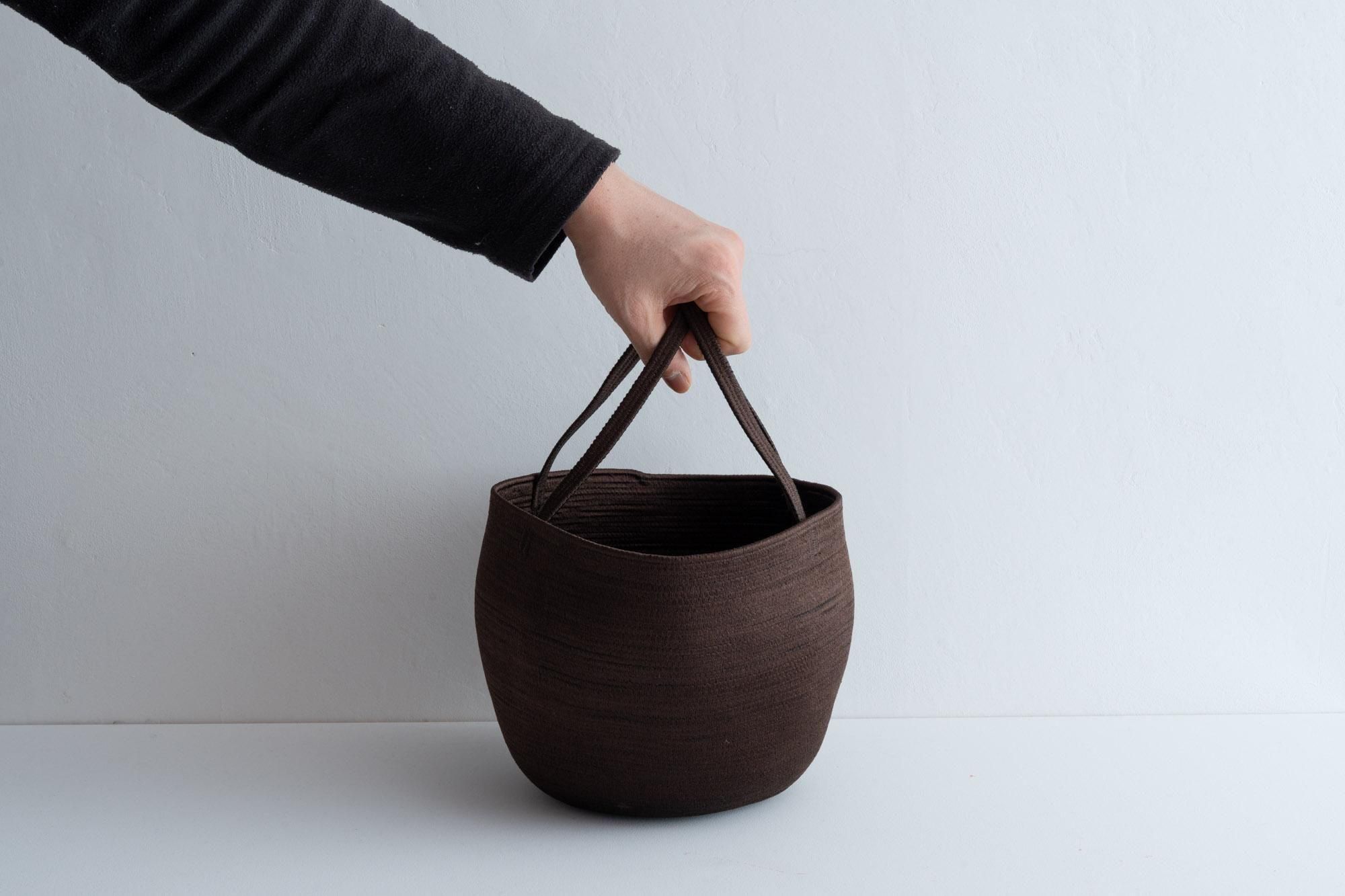 コットンの紐を芯にして、それをシルクの糸でひたすら縫い合わせて作られたバッグです。