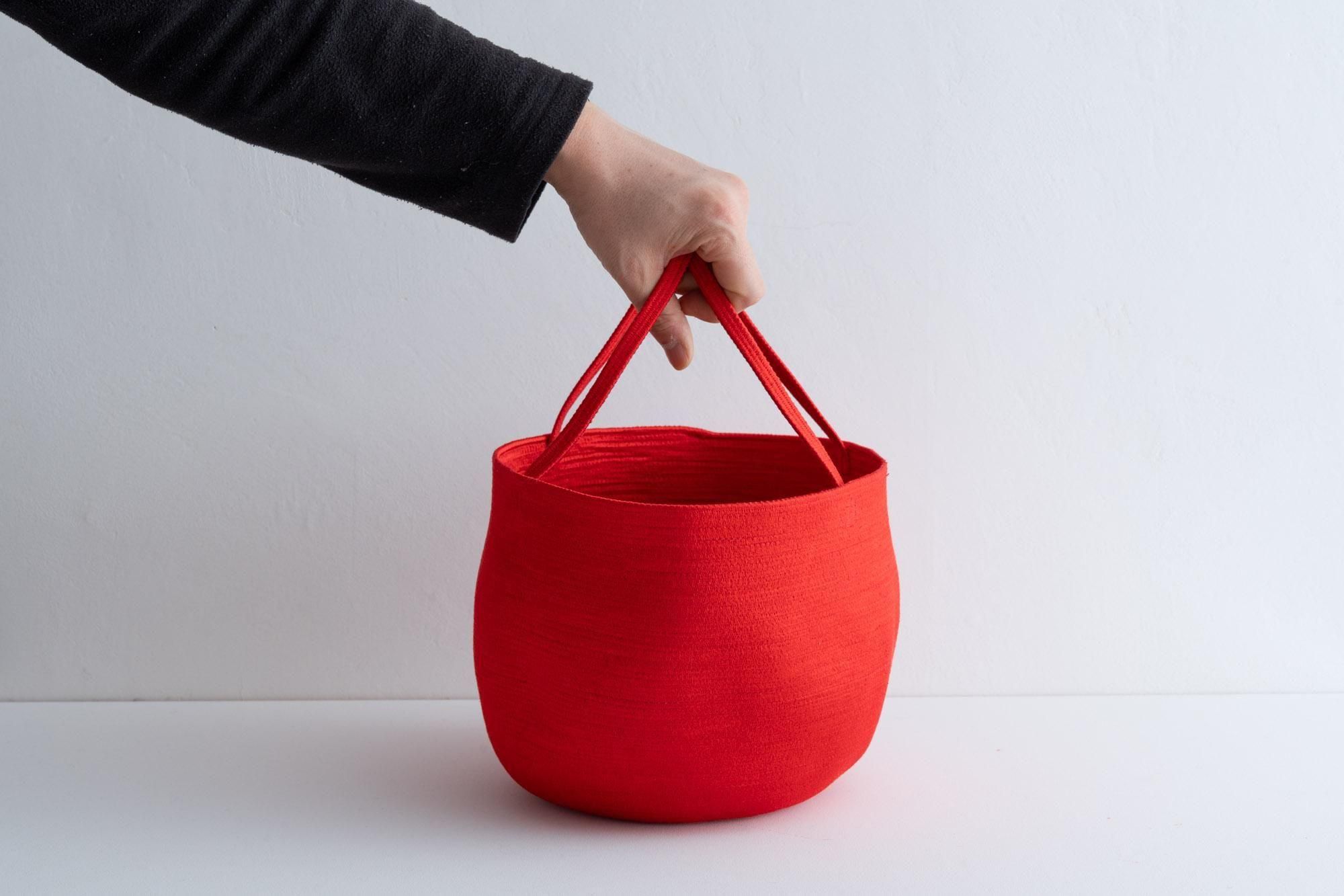 yoshinoyashimachiのバッグは、コットンの芯を縫い上げていく際に自然と生まれてくる曲線を活かした作りになっているため、似た形のものは出来こそすれ、全く同じものは二度と作ることはできません。