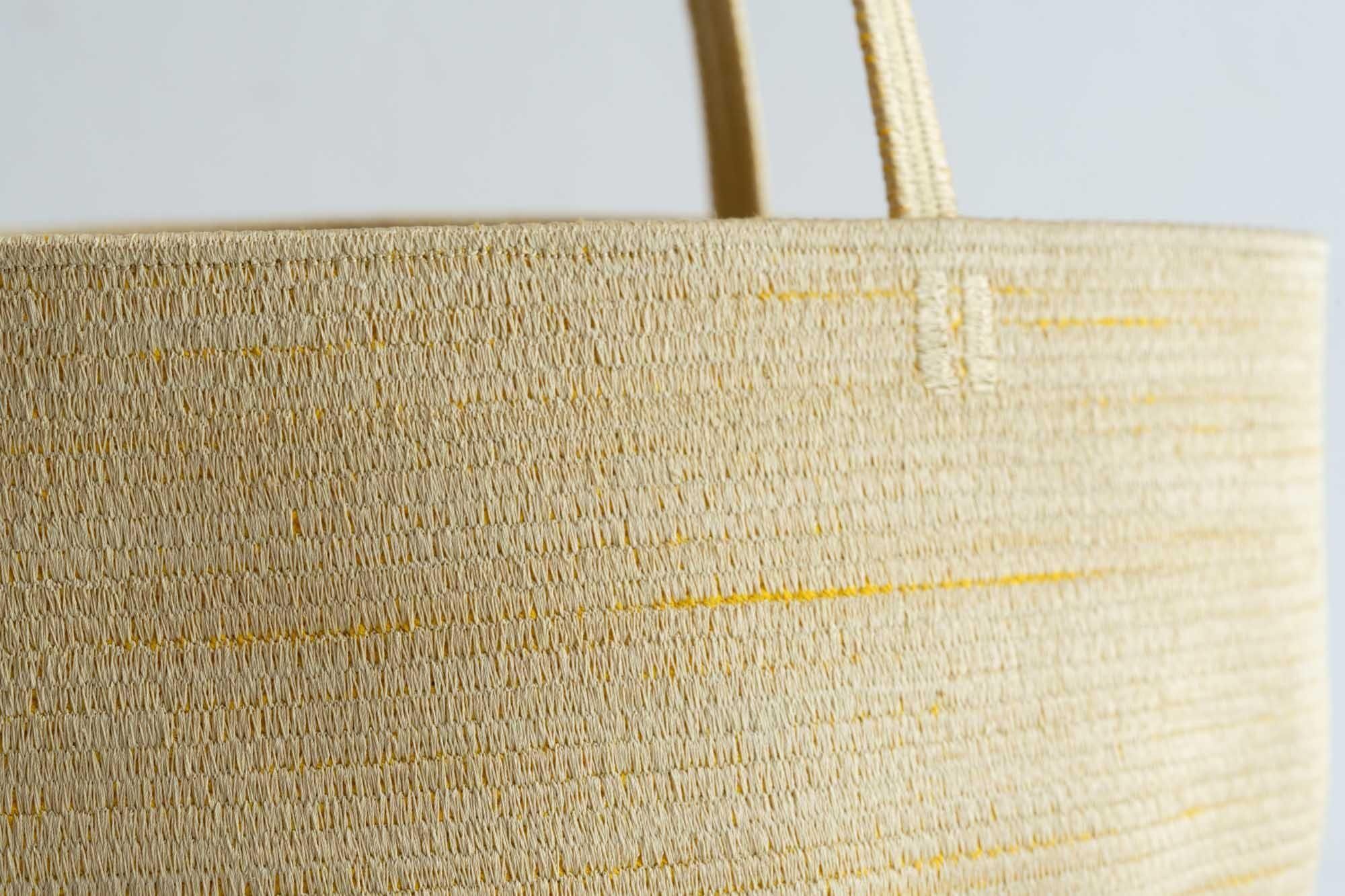 コットンの紐を芯にして、それをシルクの糸でひたすら縫い合わせて作られたバッグです。