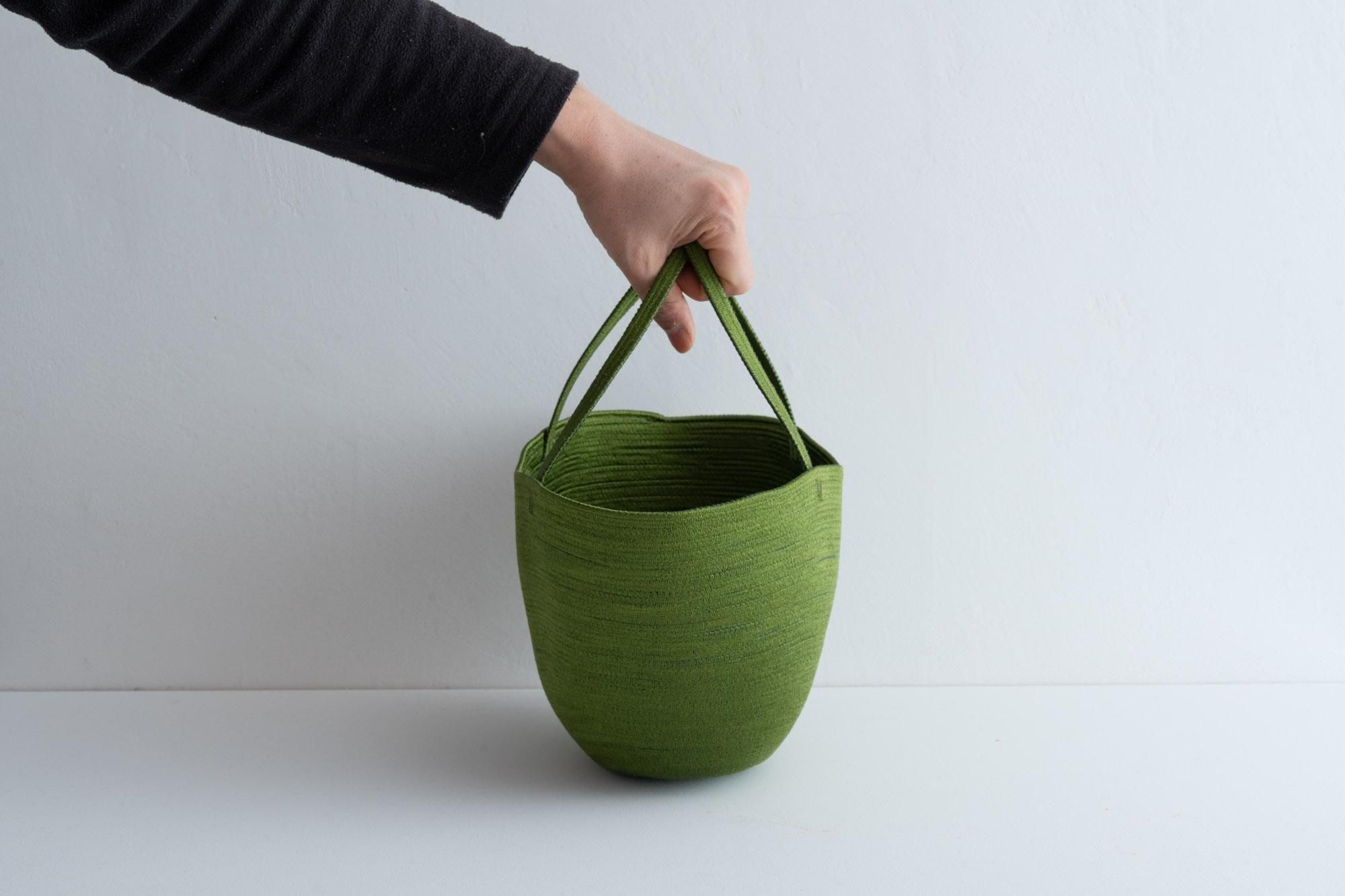 山の中に住んでいた人が山葡萄のツルでカゴを作り始めたのと同じように、近所にあったコットンの紐で作り始めたのです。