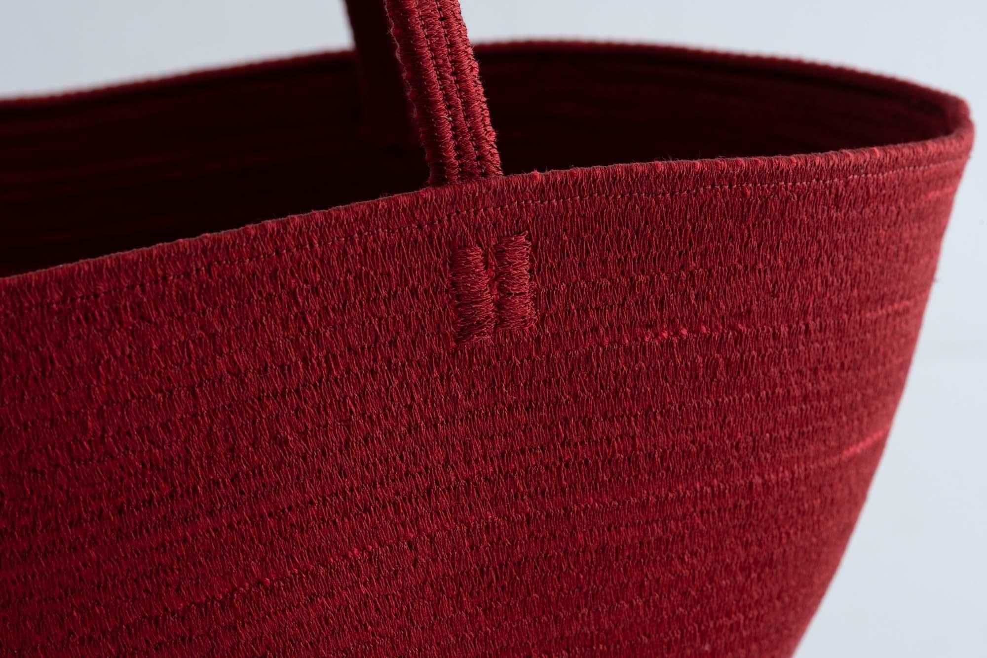 山の中に住んでいた人が山葡萄のツルでカゴを作り始めたのと同じように、近所にあったコットンの紐で作り始めたのです。