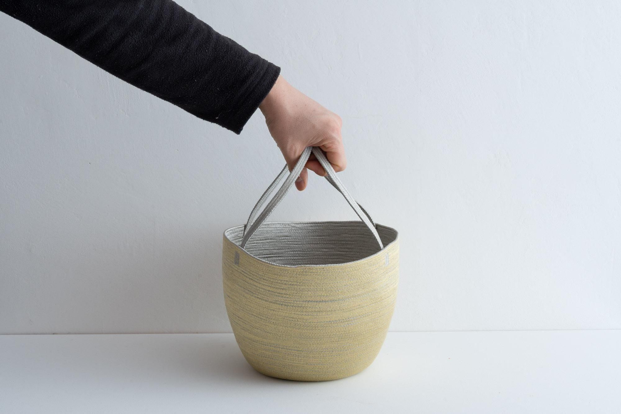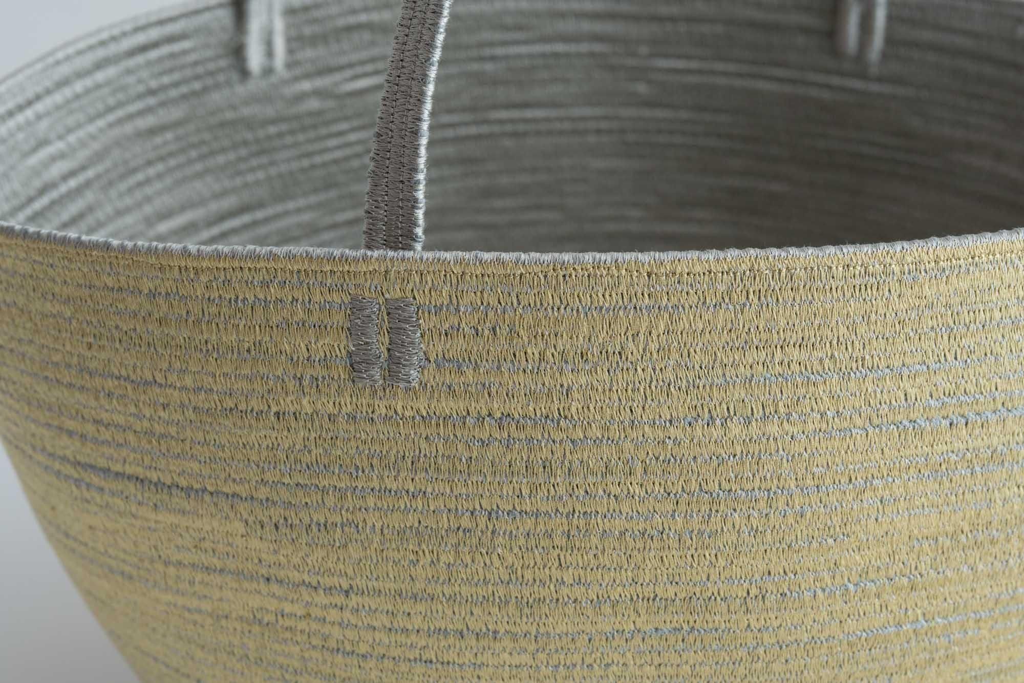 山の中に住んでいた人が山葡萄のツルでカゴを作り始めたのと同じように、近所にあったコットンの紐で作り始めたのです。